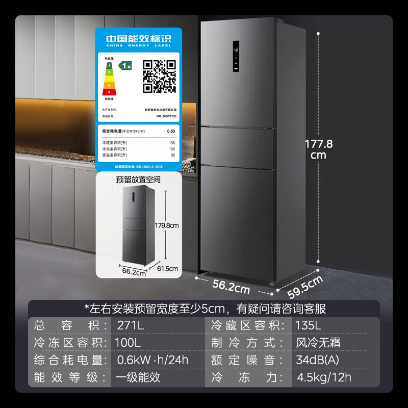 Midea 283 Sankao Door Holrigrator Первая энергия -эффективная частотная частотная частота холодная победа -Небольшой супер -тонкий официальный домик аренды.