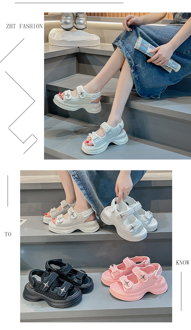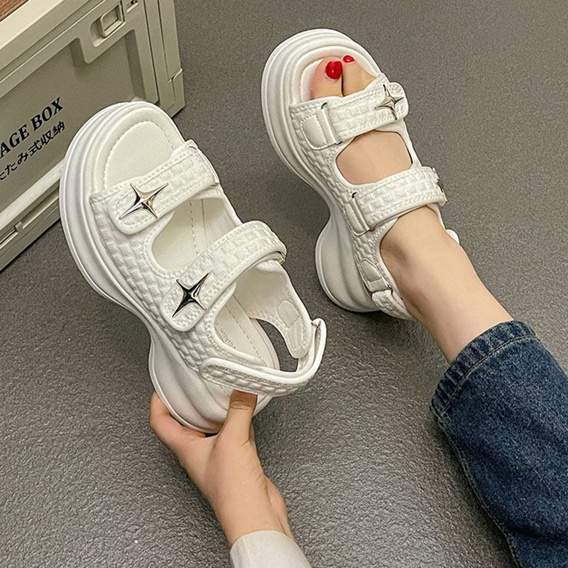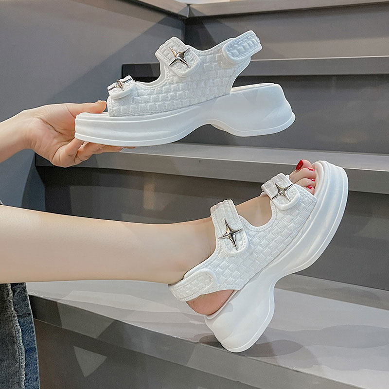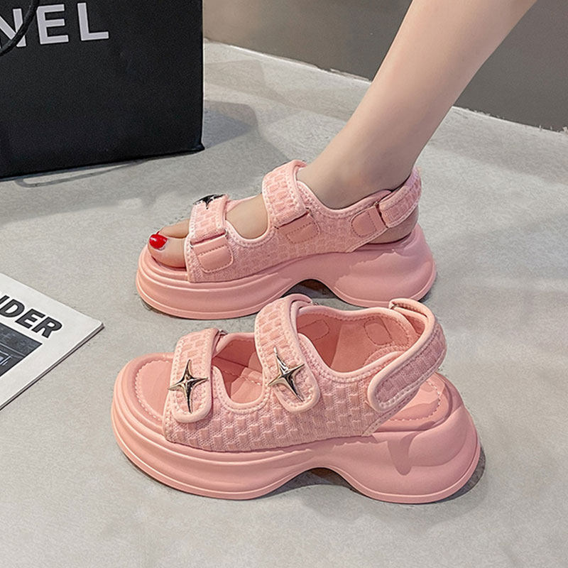 Сандалии, пляжная обувь на платформе для отдыха для беременных на липучке, в стиле Шанель