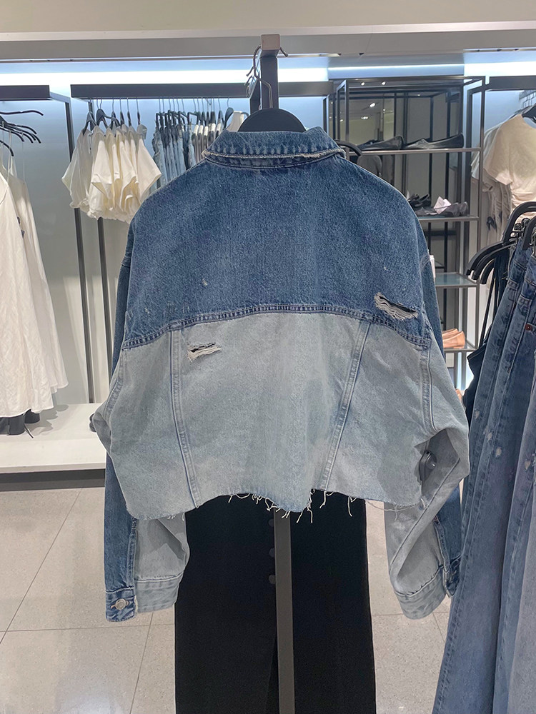 Данные ZA New RA Женская лацканая карманная отделка матовая лоскутная джинсовая куртка короткая куртка 4365071 400