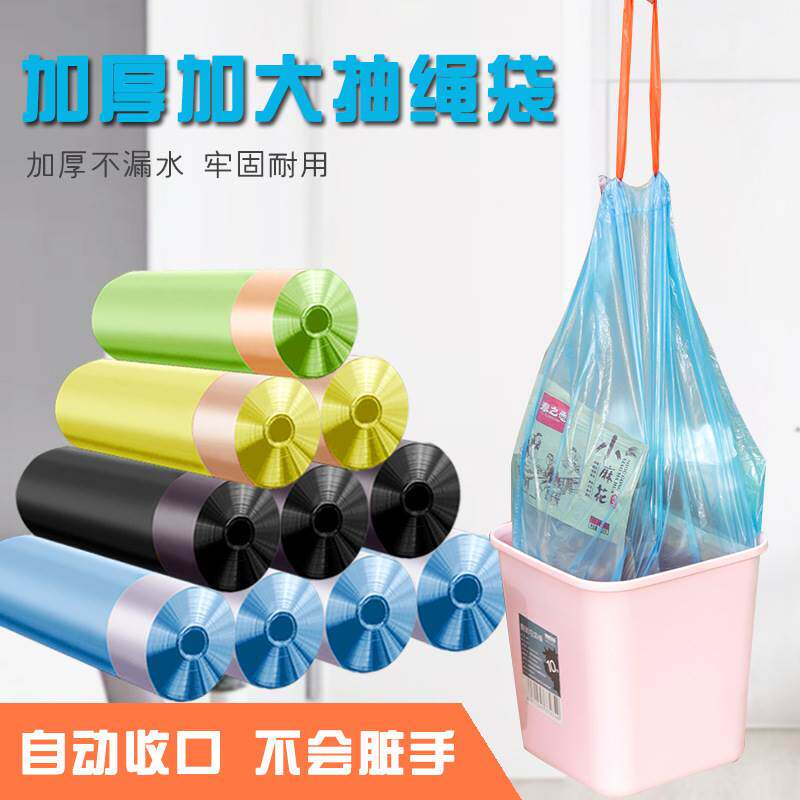 Автоматический портативный одноразовый мусорный мешок для домашнего использования, увеличенная толщина, на шнурках