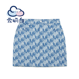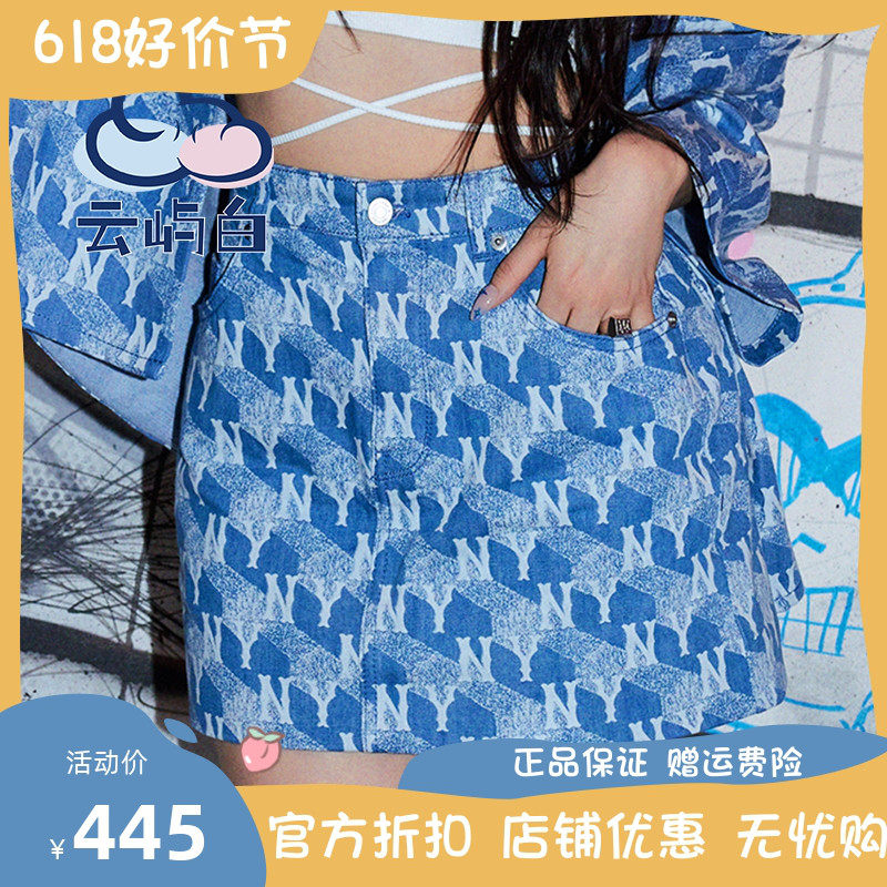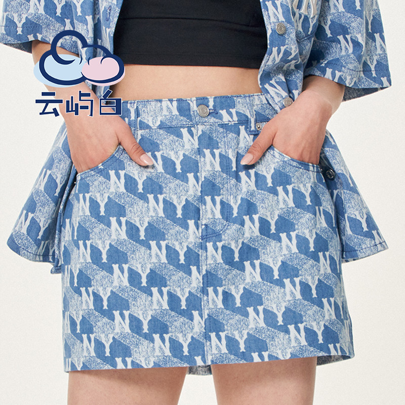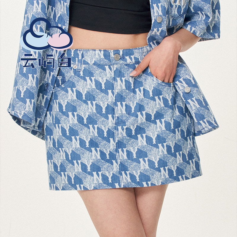 MLB, геометричная джинсовая юбка, карандаш, комплект, Южная Корея, женский стиль, А-силуэт