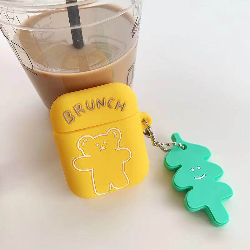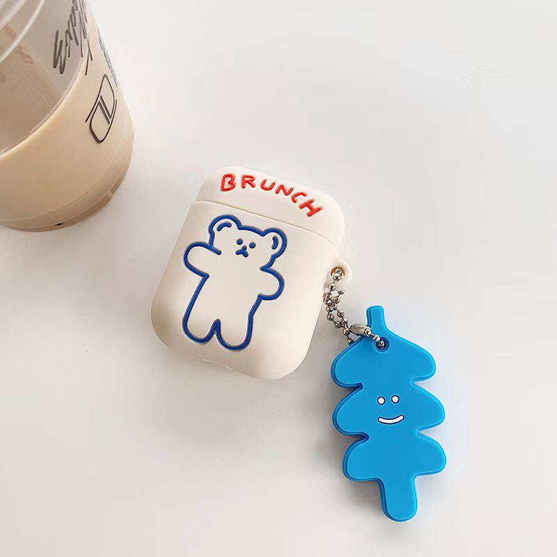 Apple, брендовый милый совместимый защитный чехол, iPhone1, беспроводные силиконовые креативные наушники подходит для мужчин и женщин для влюбленных, с медвежатами, 2, bluetooth, простой и элегантный дизайн