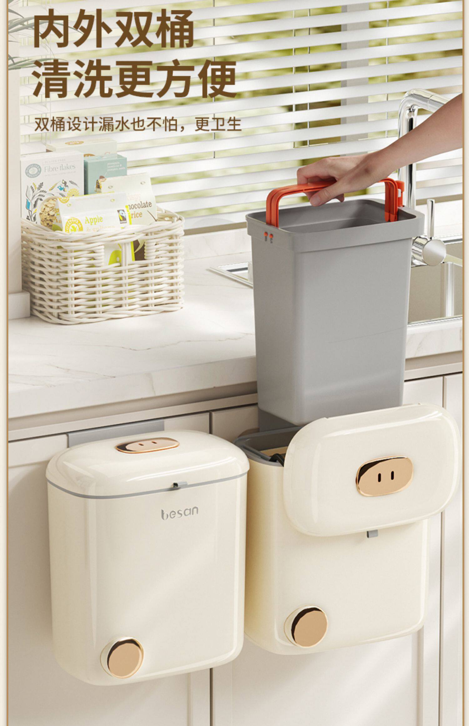 Кухонная мусорная банка стена -накрытая полоса -накрытая, кухонные отходы, туалетная бочка для хранения туалета Дверь шкафа может повесить домой