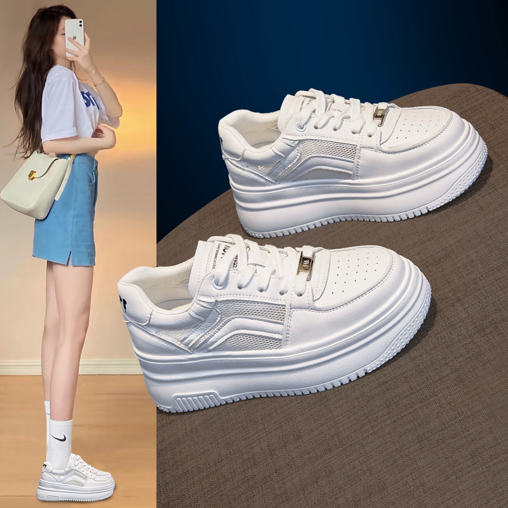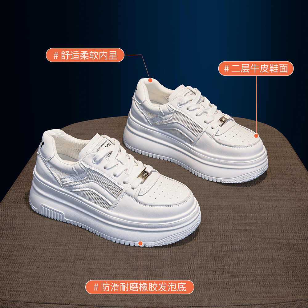 Высокая белая обувь, универсальные кроссовки на платформе для отдыха, спортивная обувь, коллекция 2023, из натуральной кожи