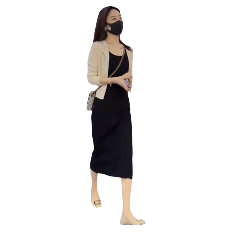 Тонкое трикотажное платье-комбинация, летний комплект, в корейском стиле, яркий броский стиль, длина миди