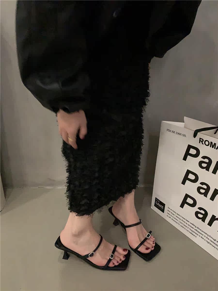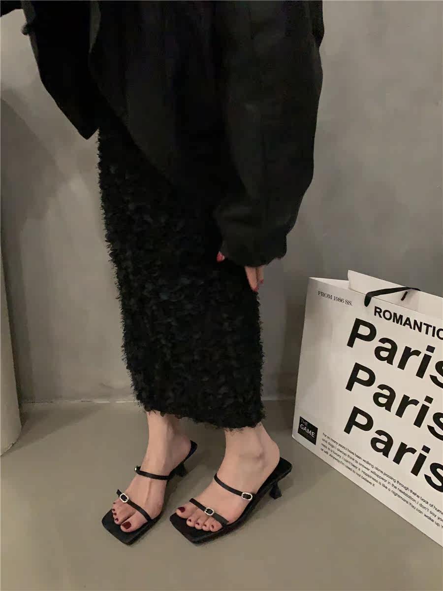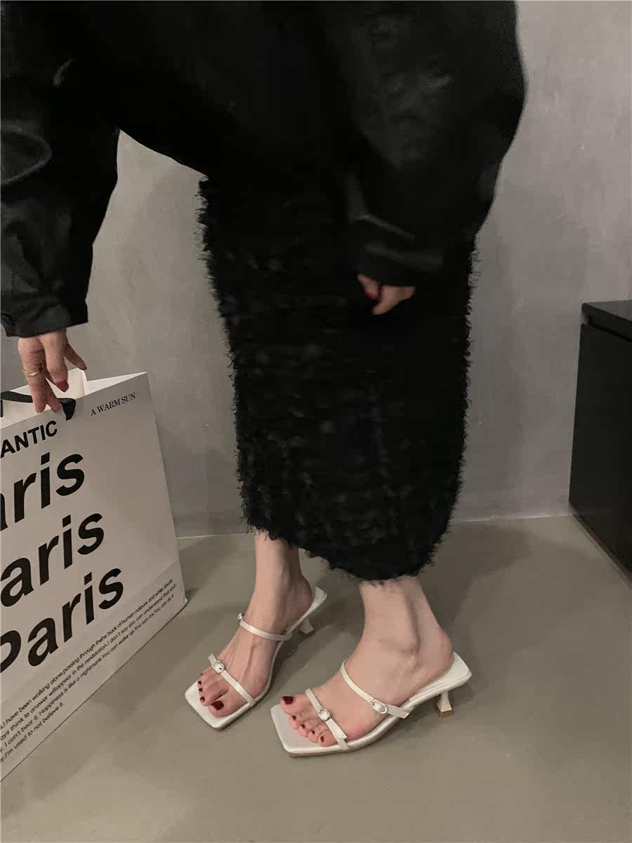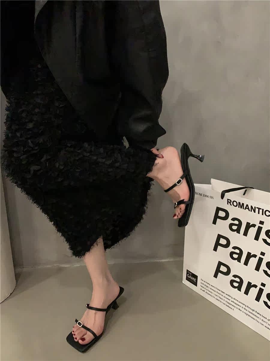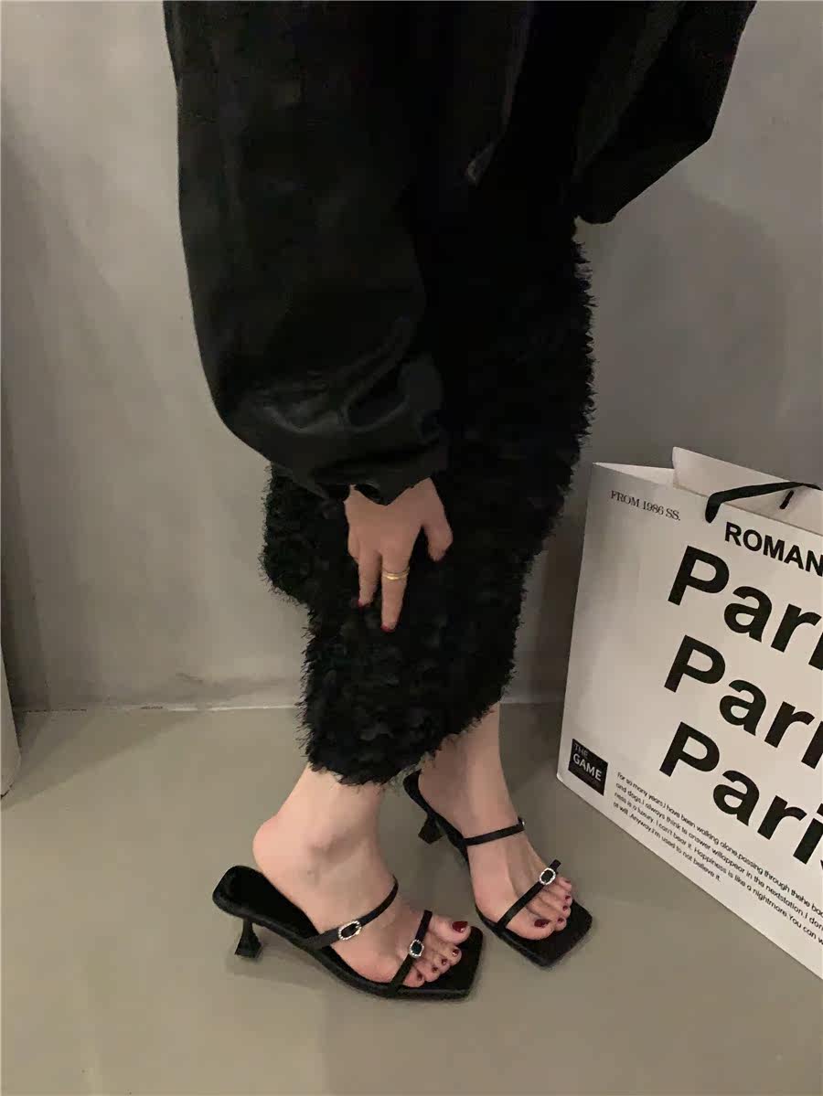 Сандалии, слайдеры на высоком каблуке, летняя обувь, французский стиль, в корейском стиле, 2023