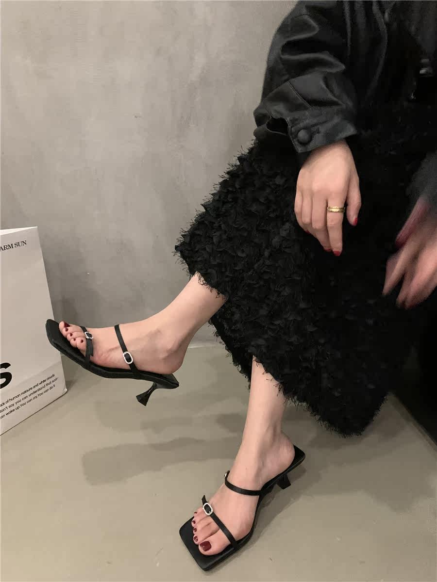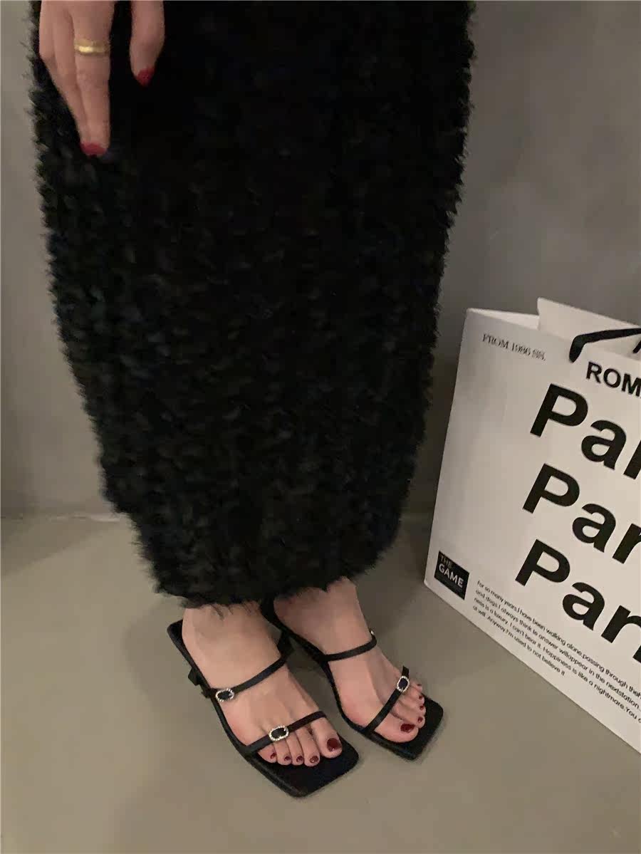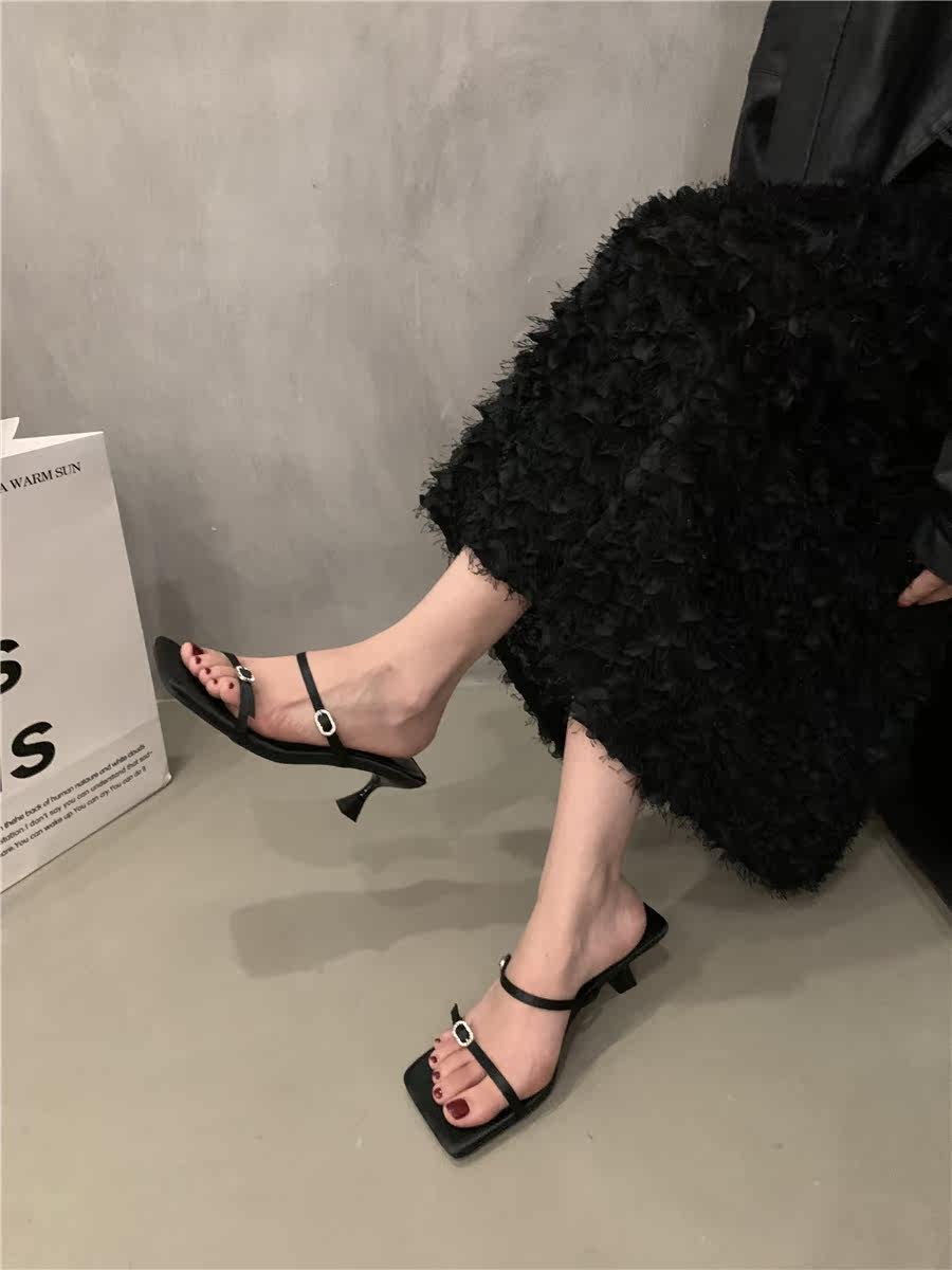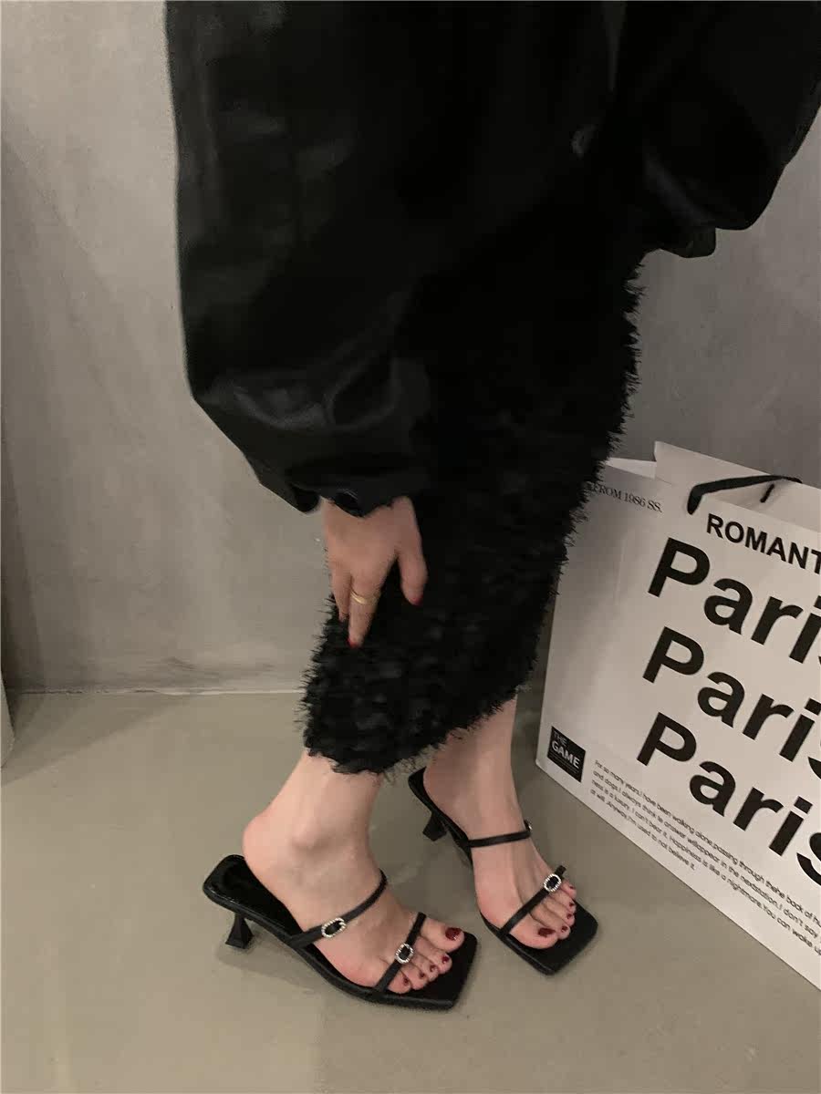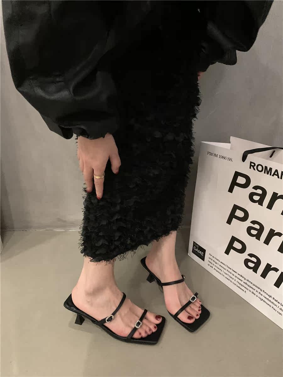 Сандалии, слайдеры на высоком каблуке, летняя обувь, французский стиль, в корейском стиле, 2023