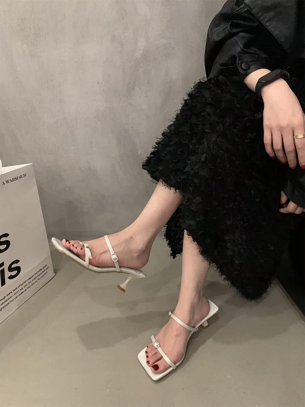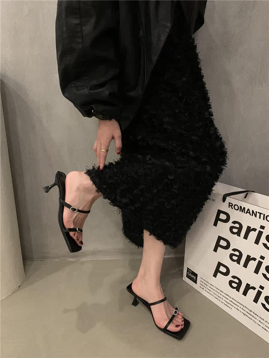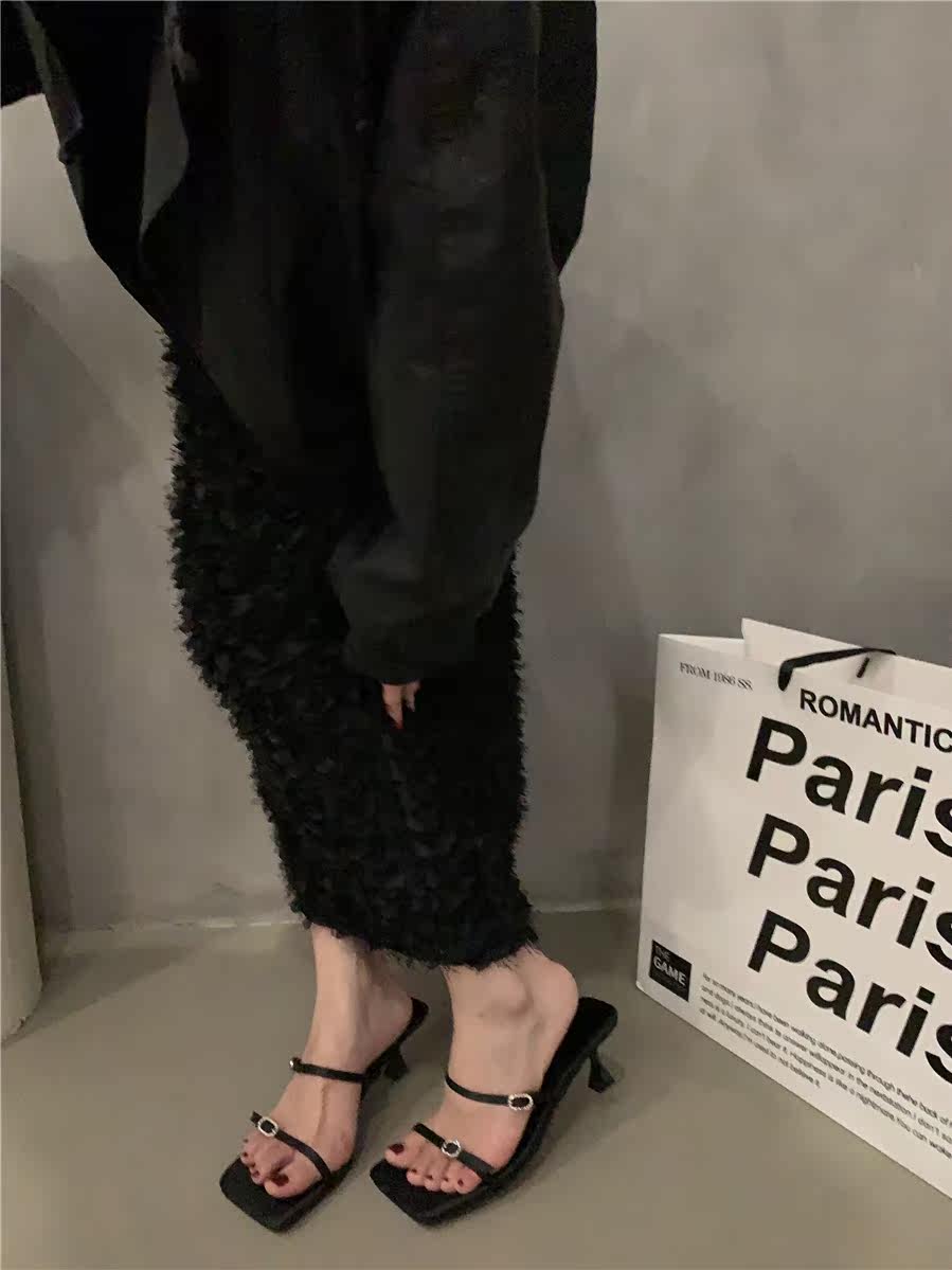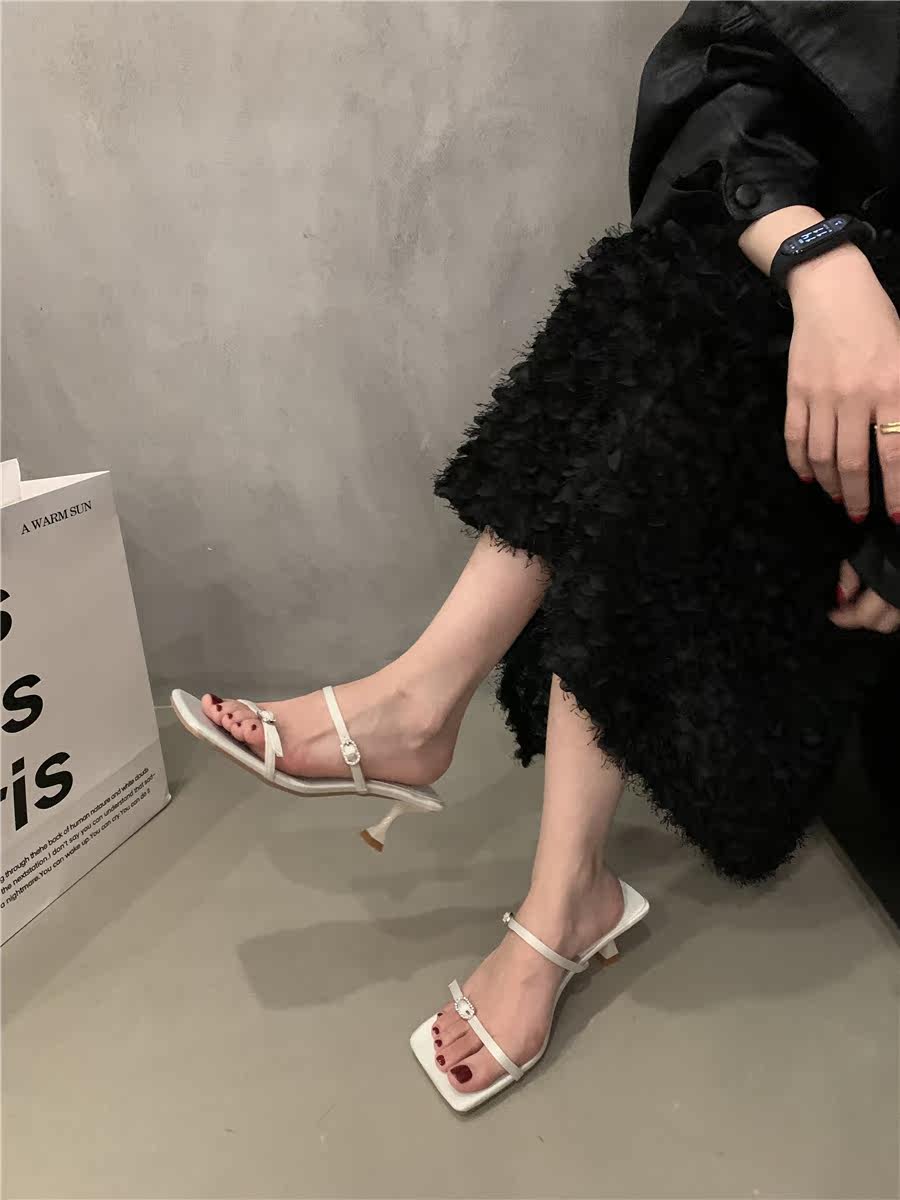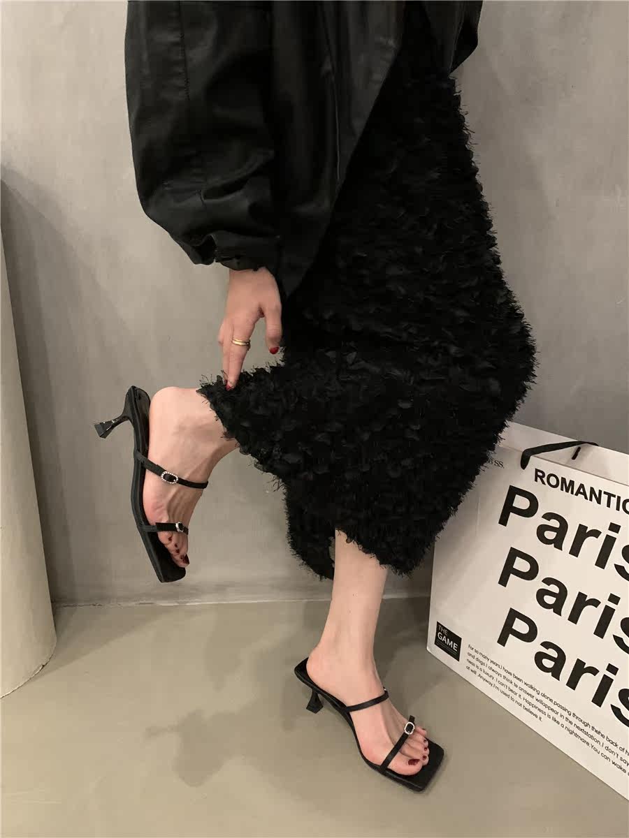 Сандалии, слайдеры на высоком каблуке, летняя обувь, французский стиль, в корейском стиле, 2023
