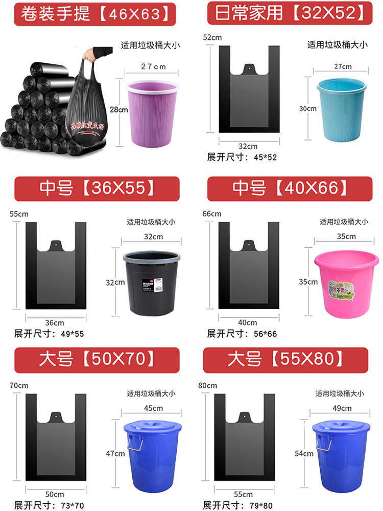 Портативный мусорный мешок для домашнего использования, большой жилет, пластиковое мусорное ведро, увеличенная толщина