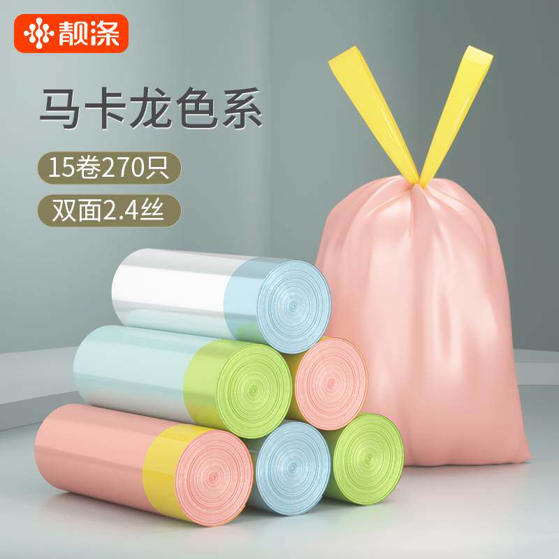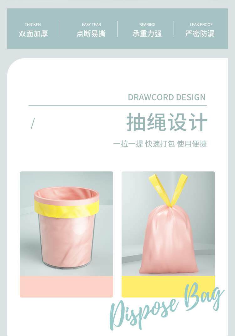 Портативный пластиковый мусорный мешок для домашнего использования, на шнурках, увеличенная толщина
