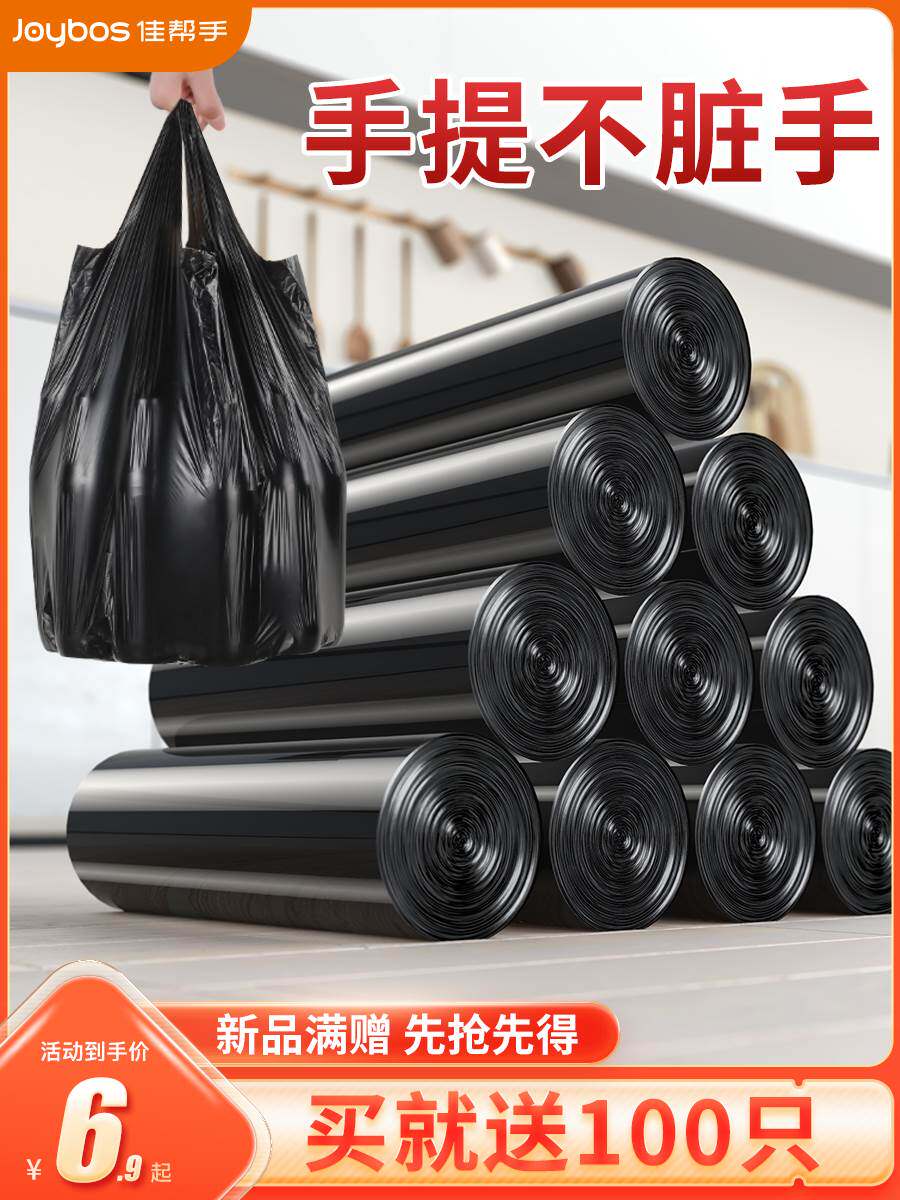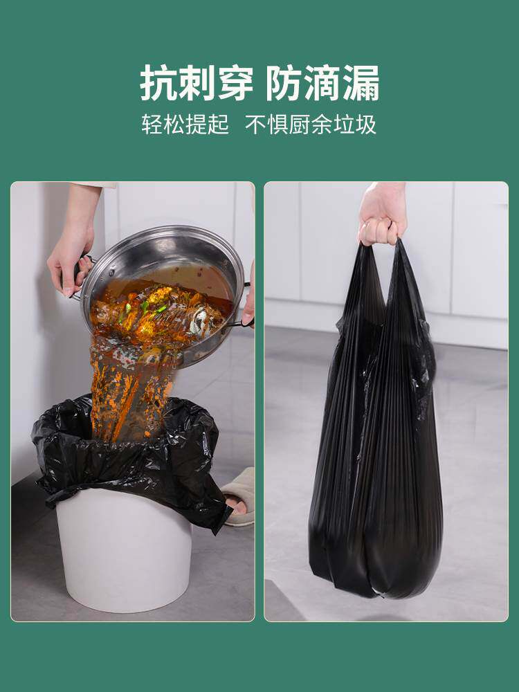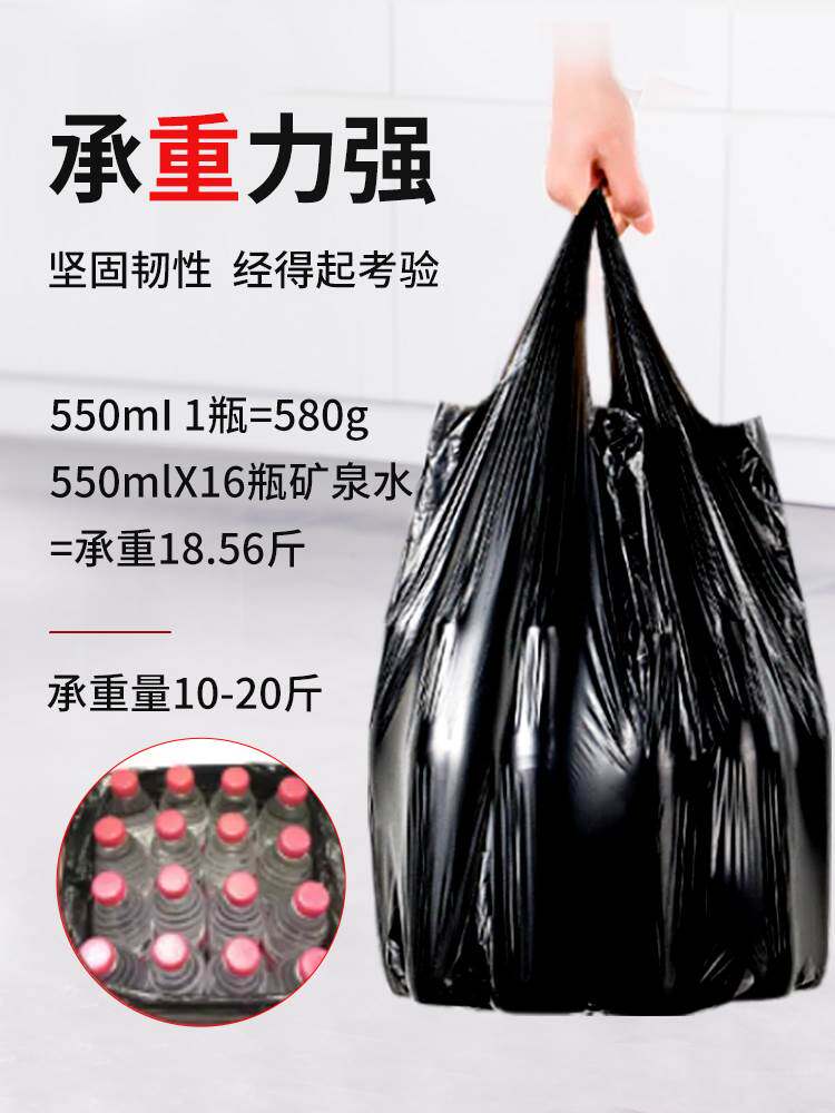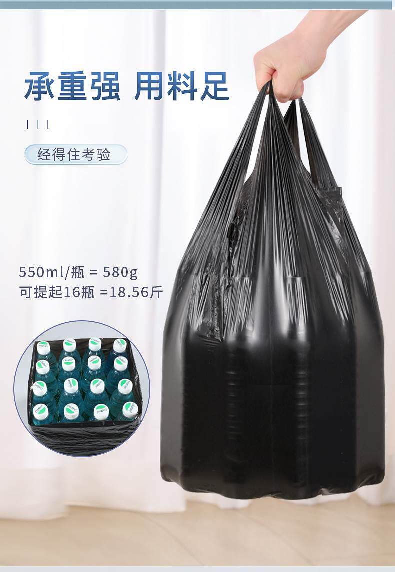 Портативный большой мусорный мешок для домашнего использования, черный пластиковый жилет, увеличенная толщина