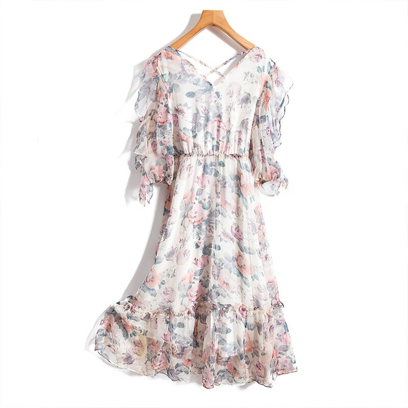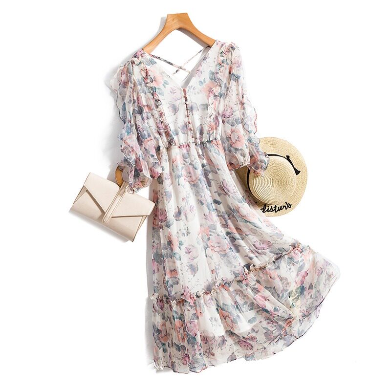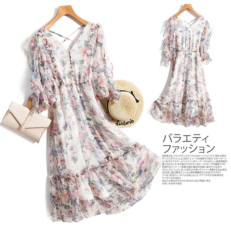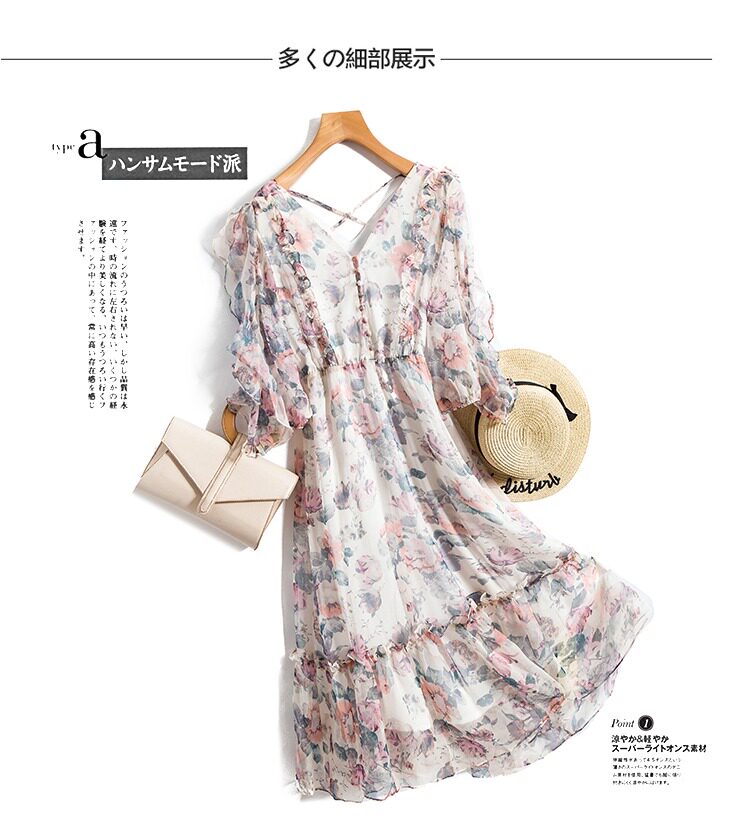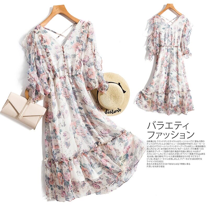 Летнее шифоновое платье, большой размер, в цветочек, подходит для полных девушек, в западном стиле