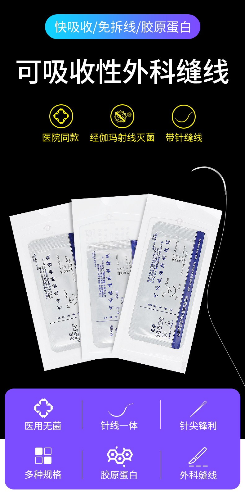 | Цвет: | 5-0 3/8 5*10 Пакет [быстрое поглощение 7-15 дней], 6-0 3/8 4*10 упаковки [быстрое поглощение 7-15 дней], 7-0 3/8 3*10 Пакет [быстрое поглощение 7-15 дней] |