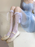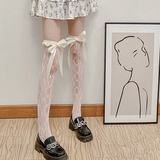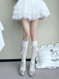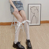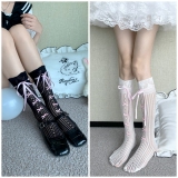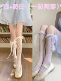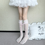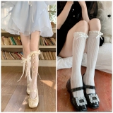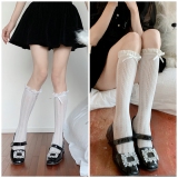 Белые цветные летние тонкие кружевные носки с бантиком, стиль Лолита, средней длины
