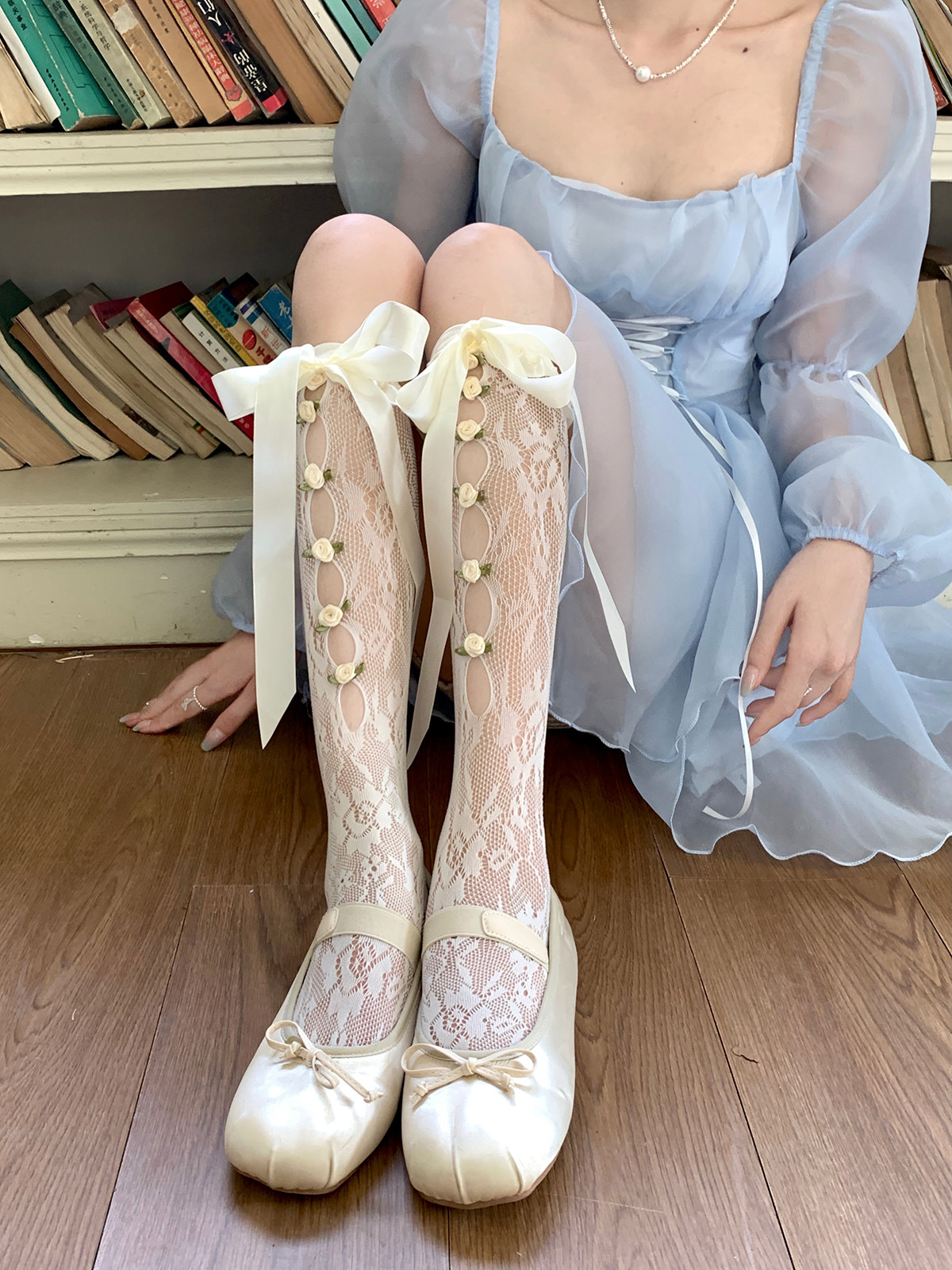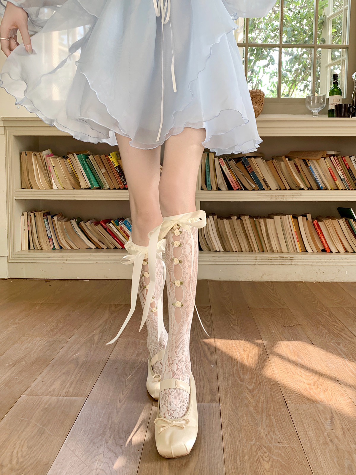 - Лента, гольфы, в цветочек, средней длины