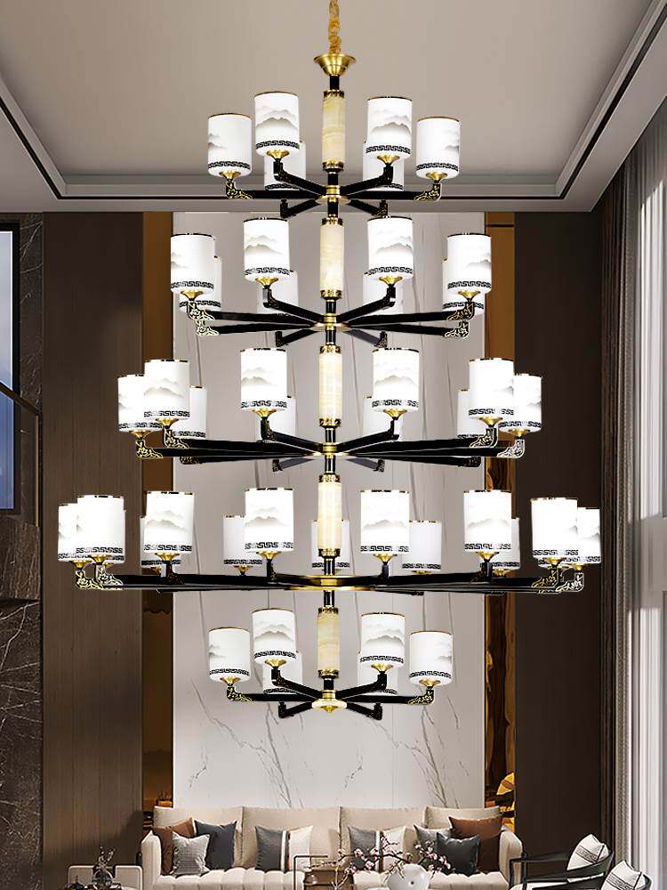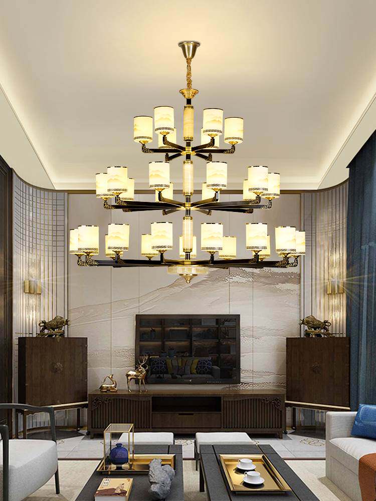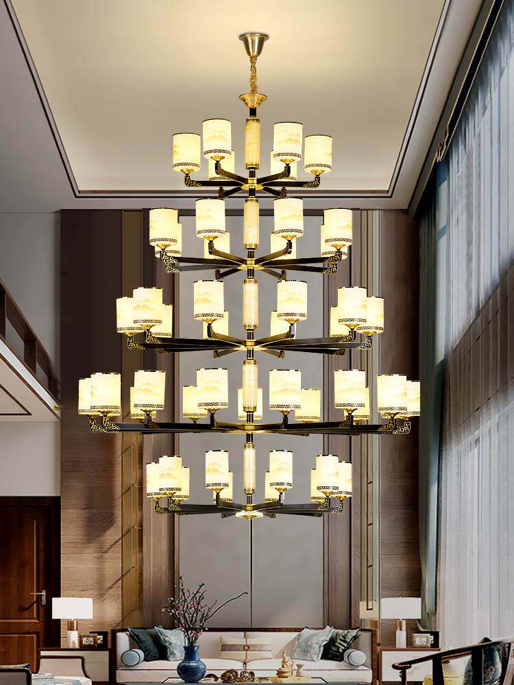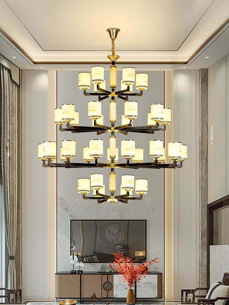 Медная люстра для загородного дома, светильник для гостиной подходит для лестницы, китайский стиль