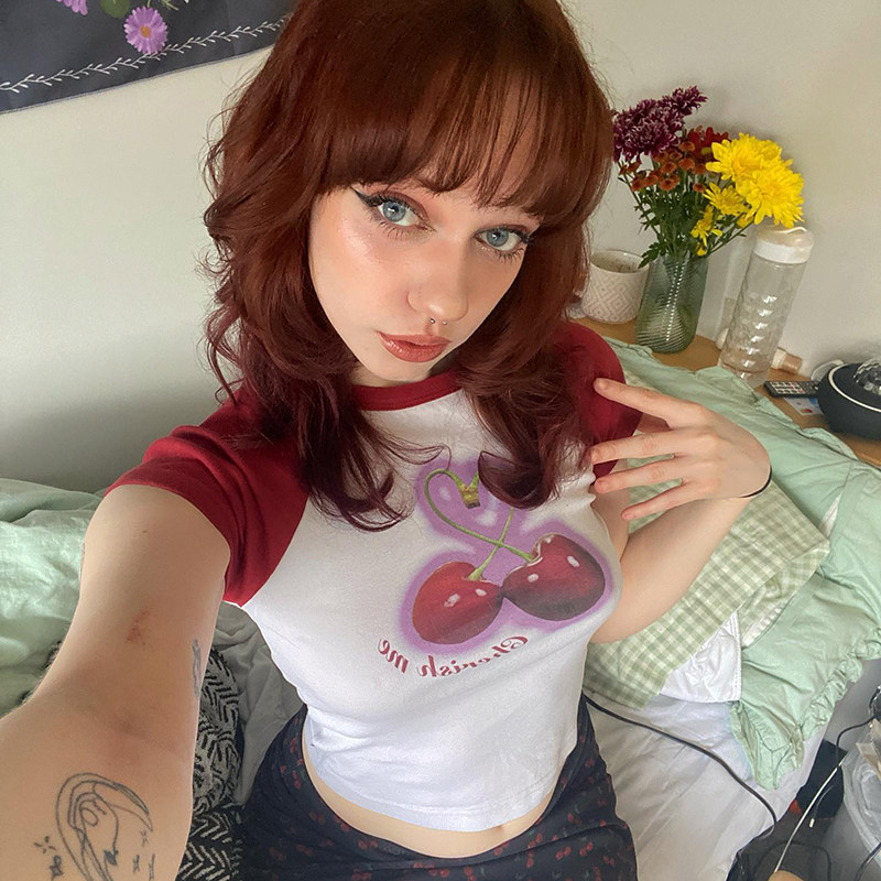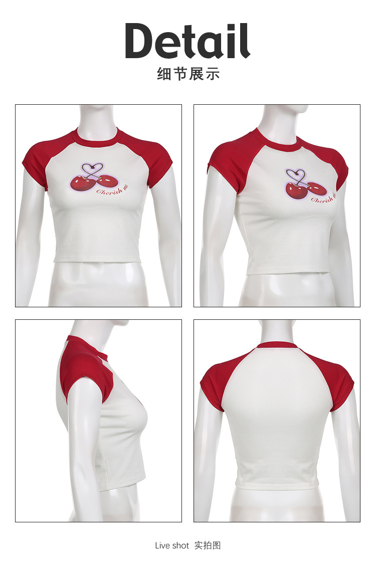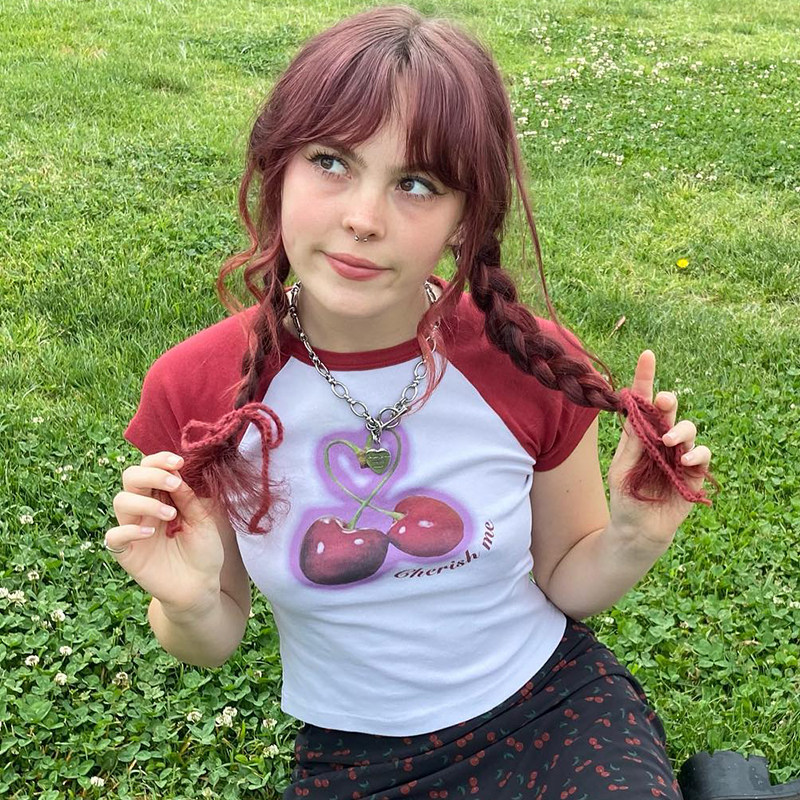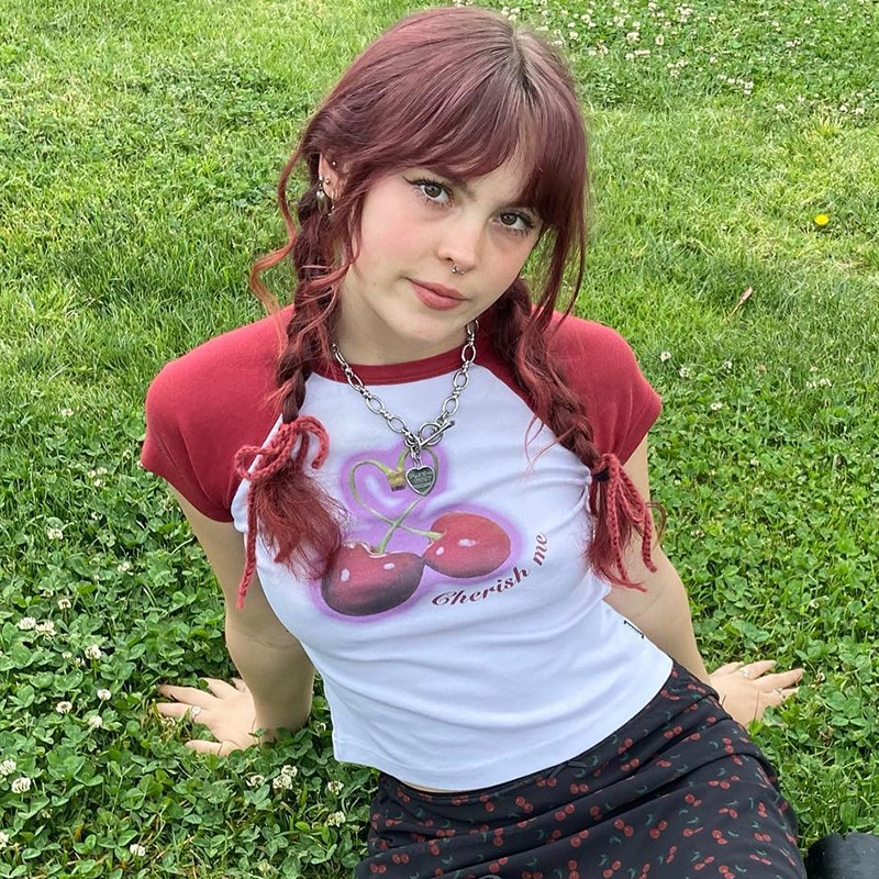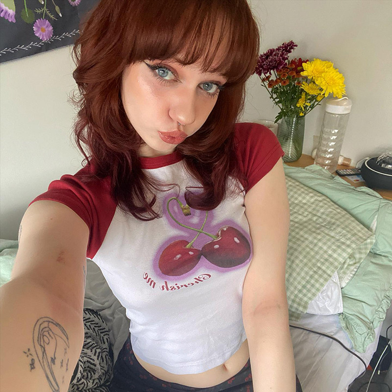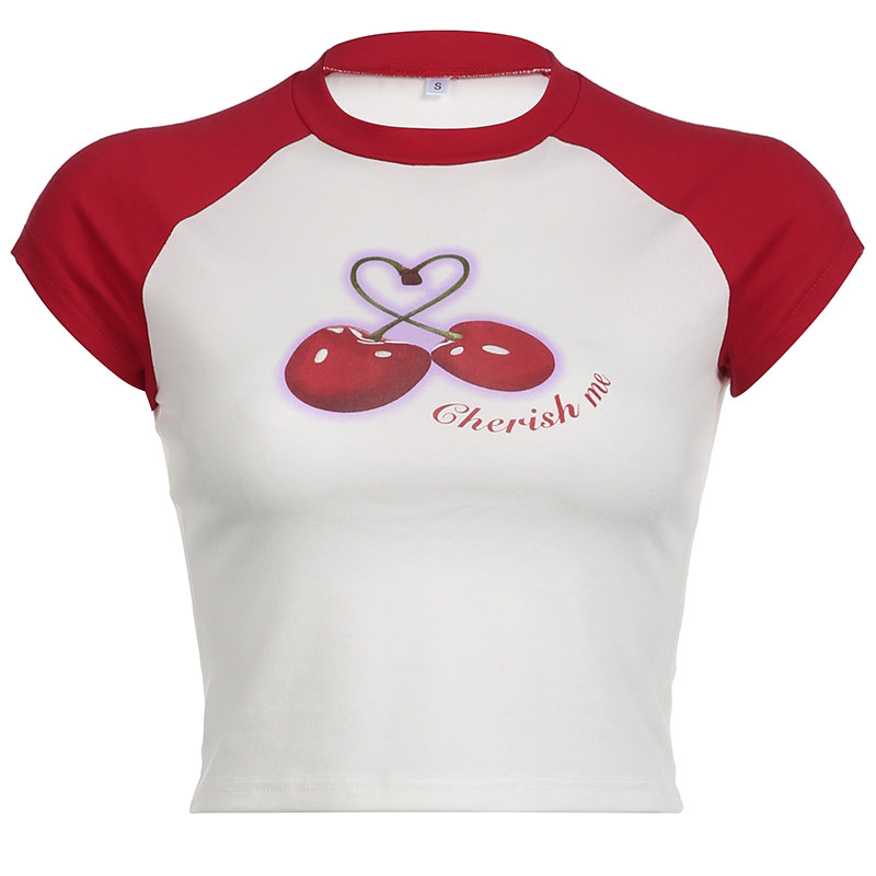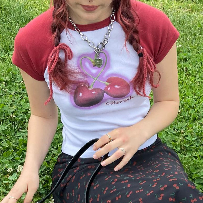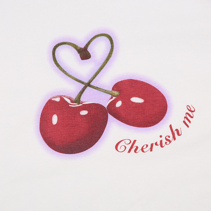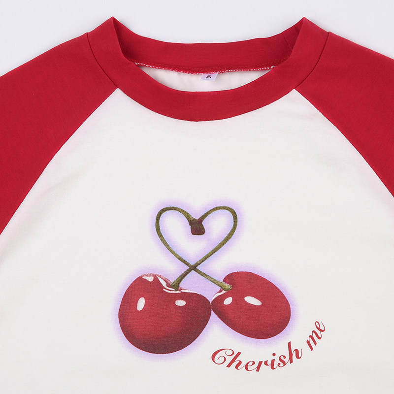 Милая милая девочка вишневая вишневая печать плеча T -Fore женская повседневная девушка Suslim Girl