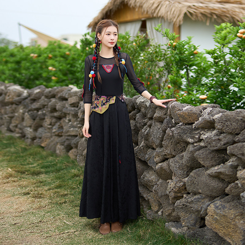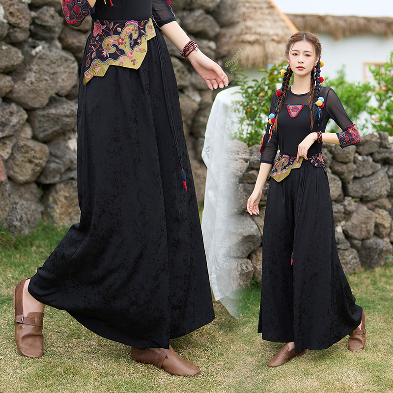 Этнические ретро штаны для отдыха, этнический стиль, с вышивкой, китайский стиль, свободный крой
