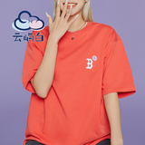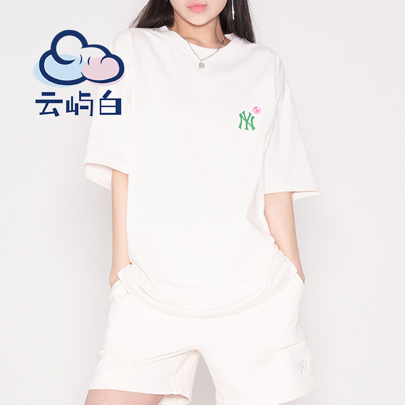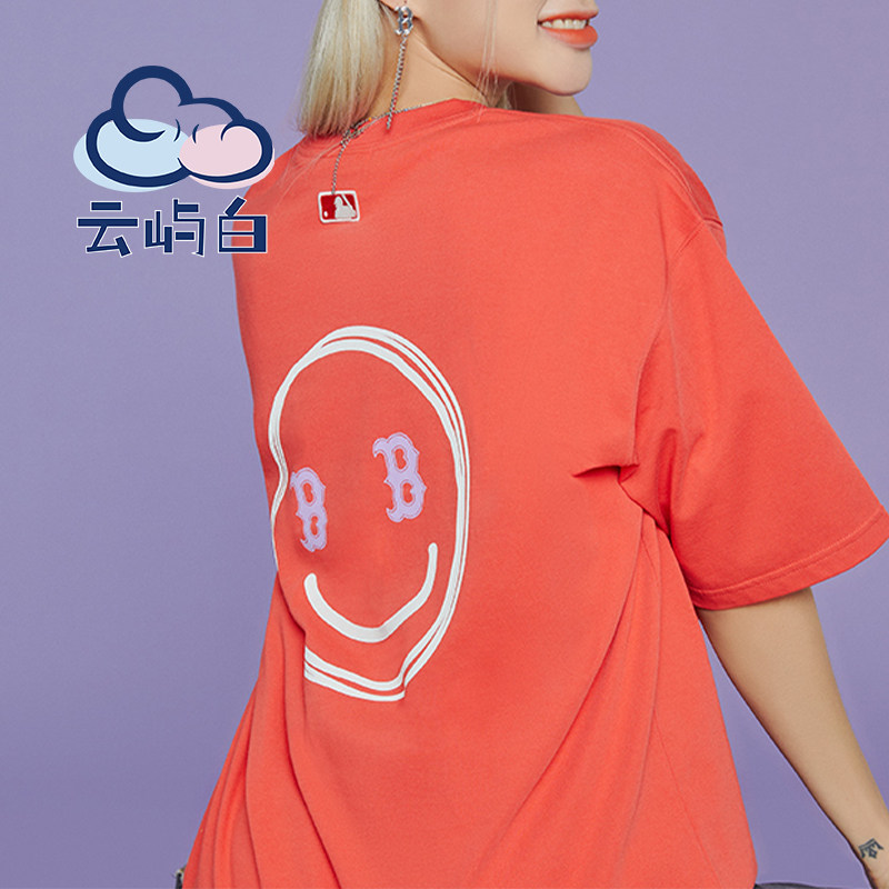 MLB, спортивная футболка подходит для мужчин и женщин для влюбленных для отдыха, короткий рукав, оверсайз