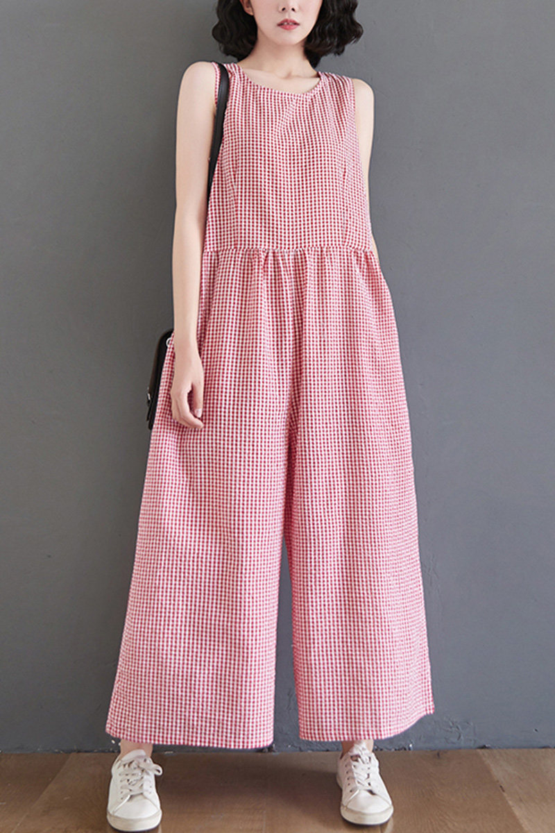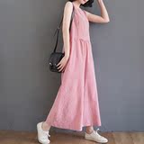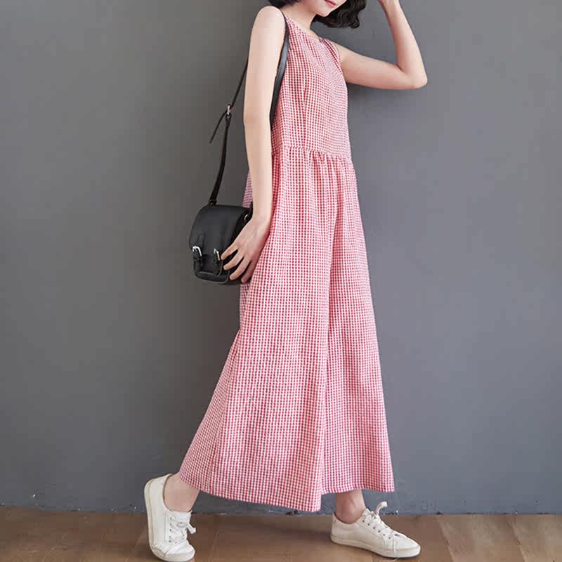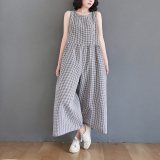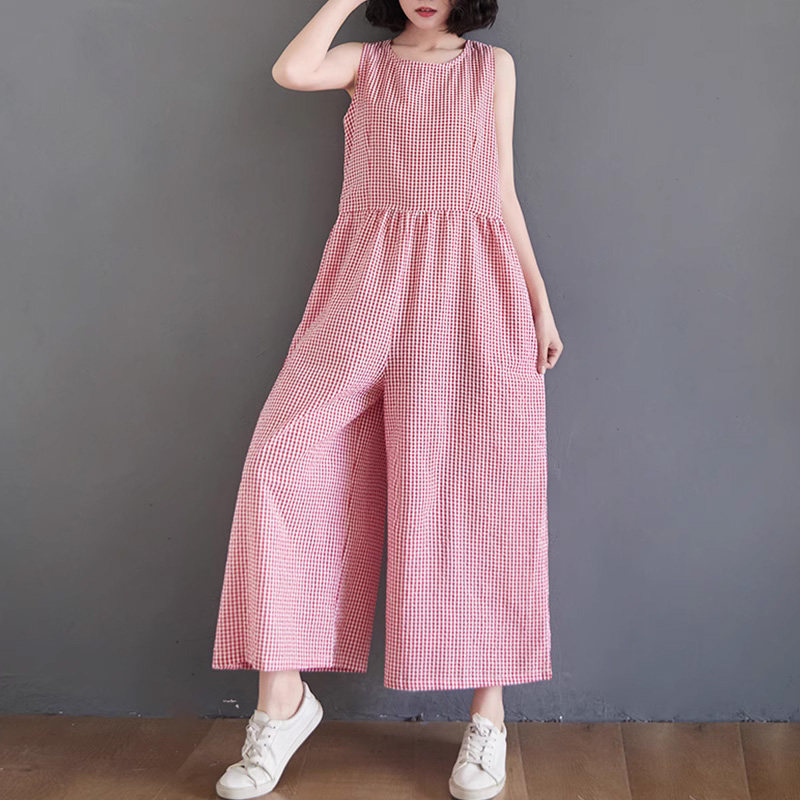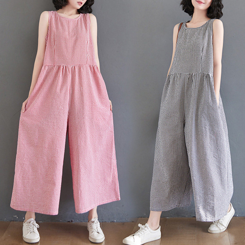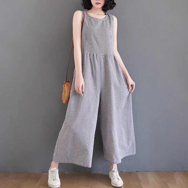 Жилет, комбинезон, штаны для отдыха, из хлопка и льна, высокая талия