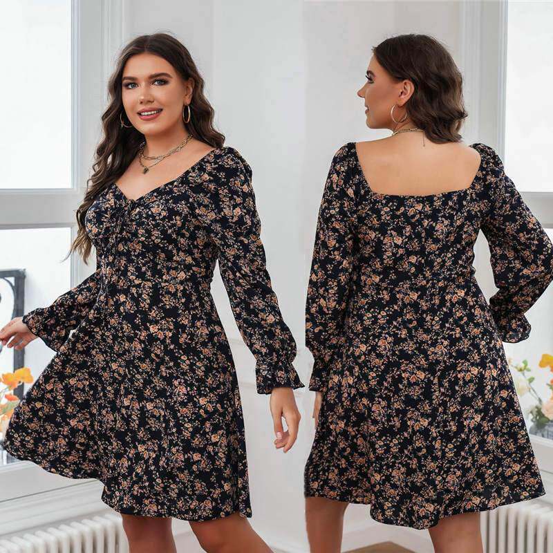 Женское сексуальное платье больших размеров с длинными рукавами, модный комбинезон с длинными рукавами и цветочным принтом больших размеров