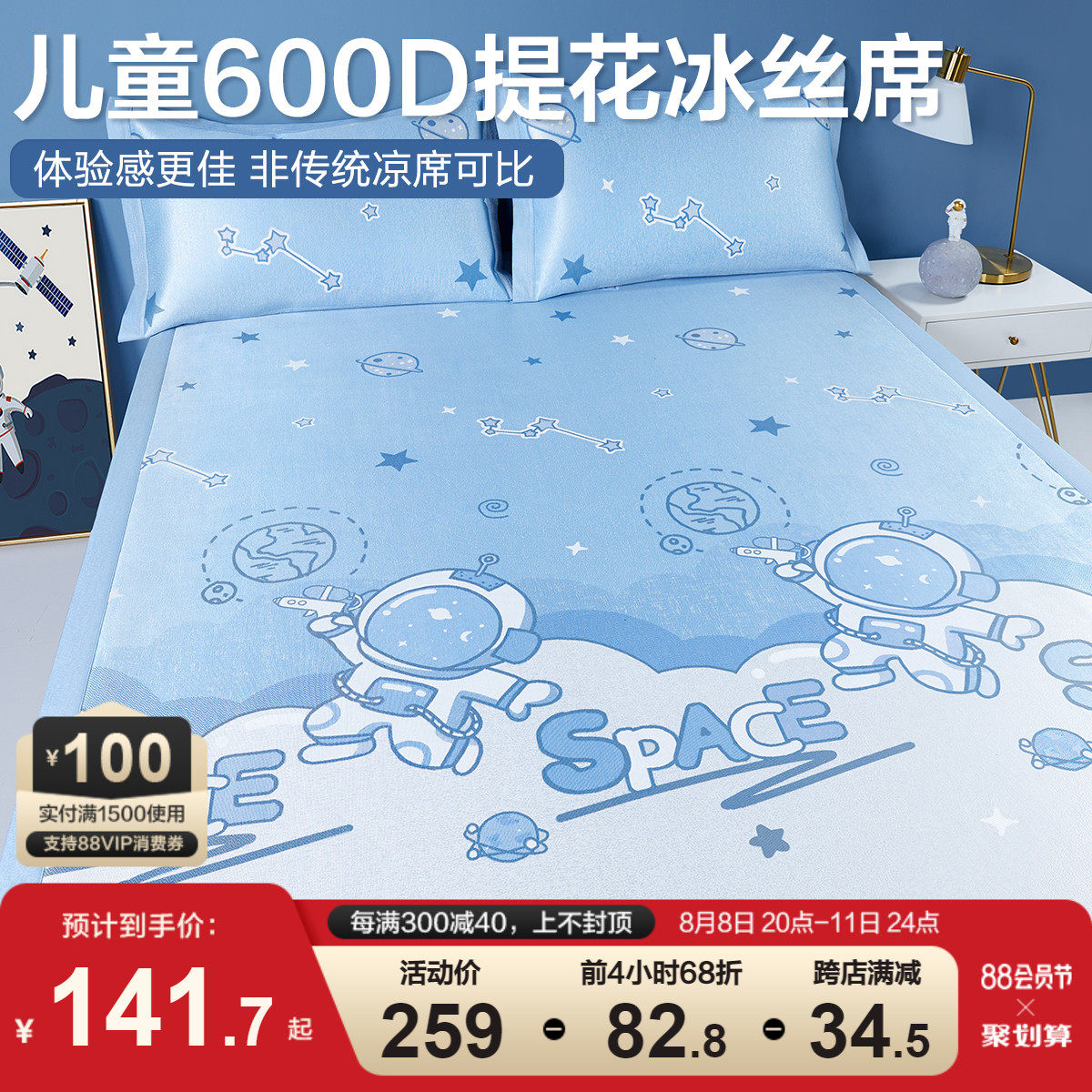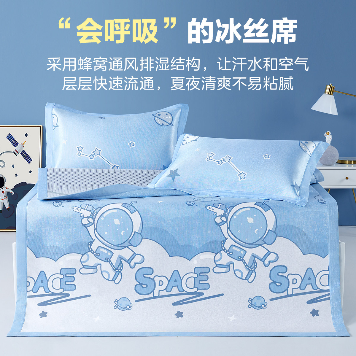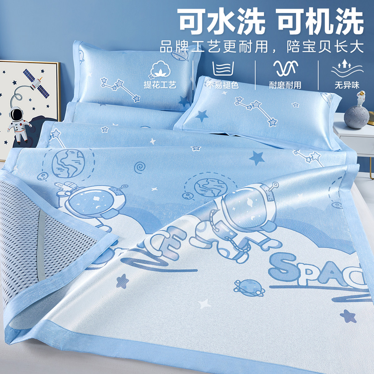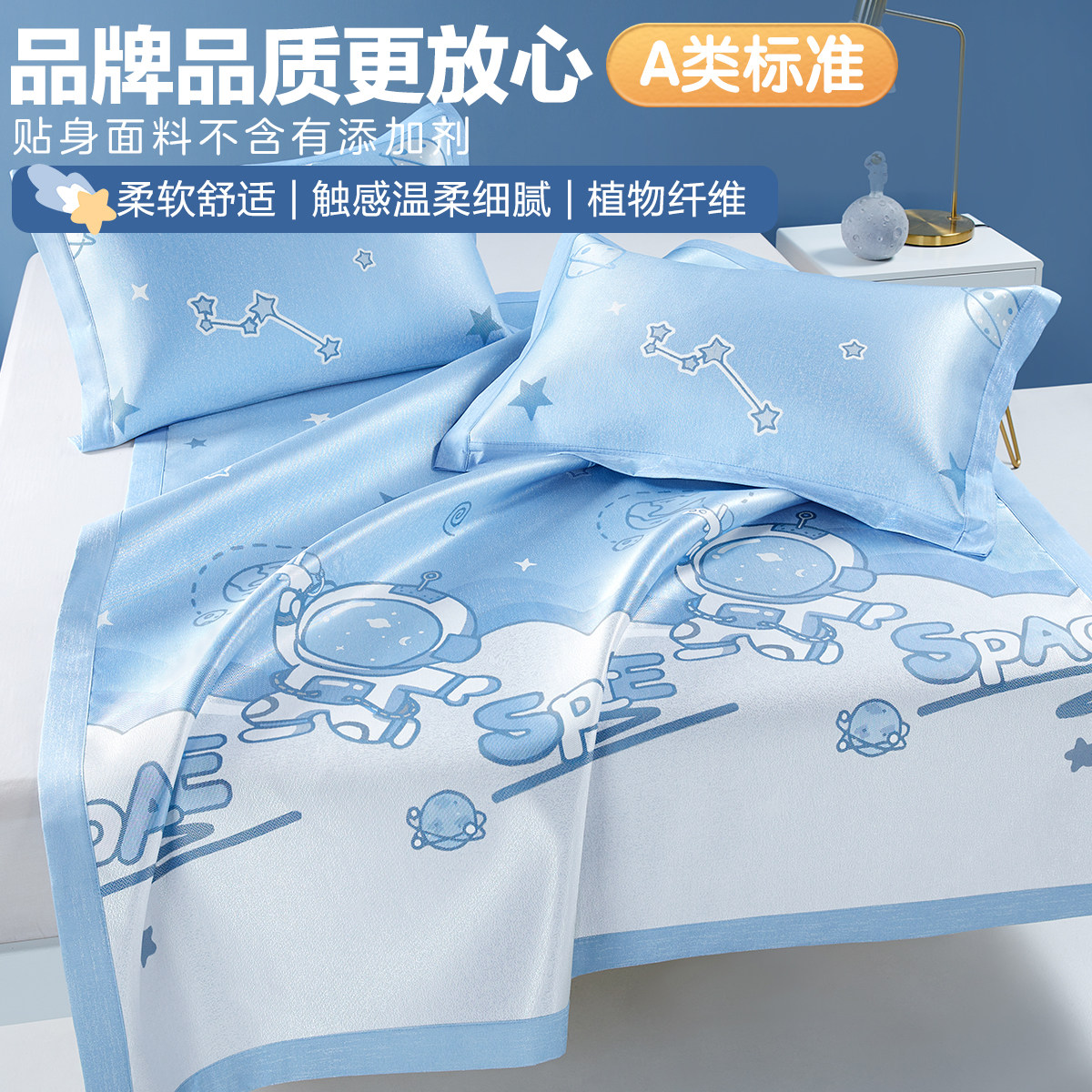 Охлаждающий летний элитный коврик, мультяшный детский шелковый комплект для детского сада, 3 предмета, можно стирать