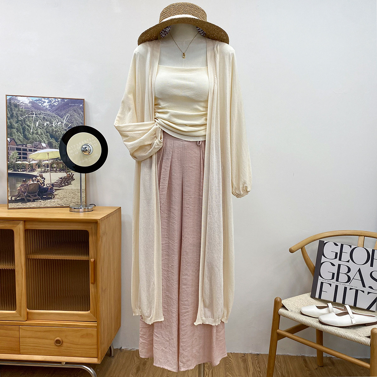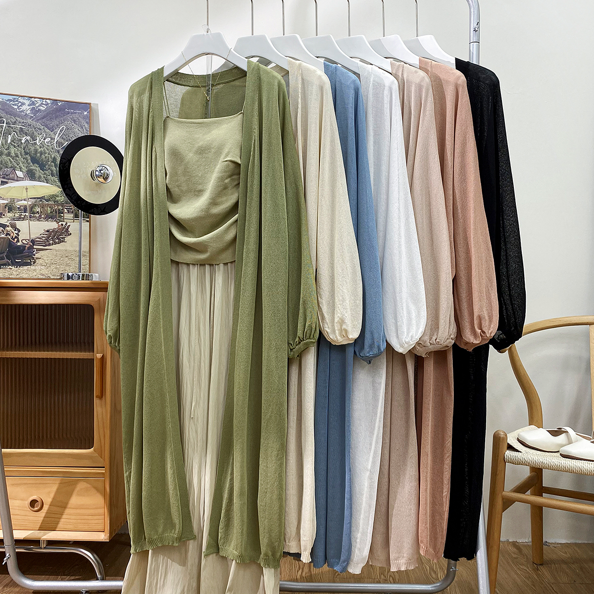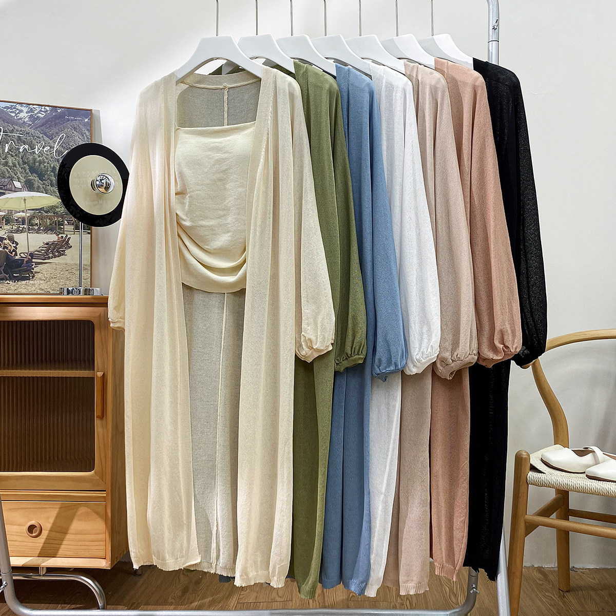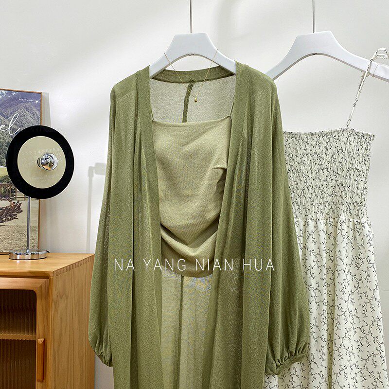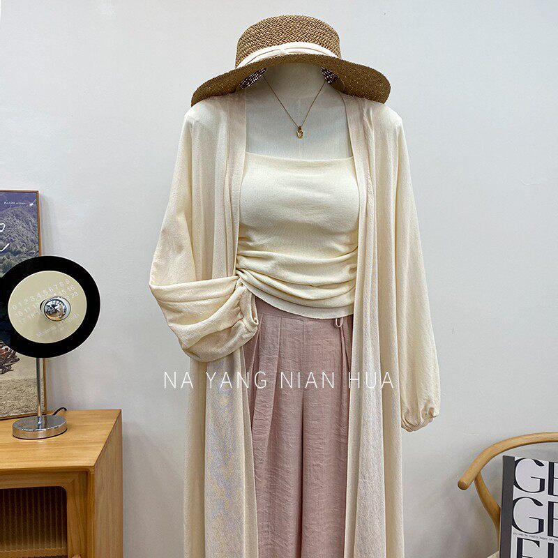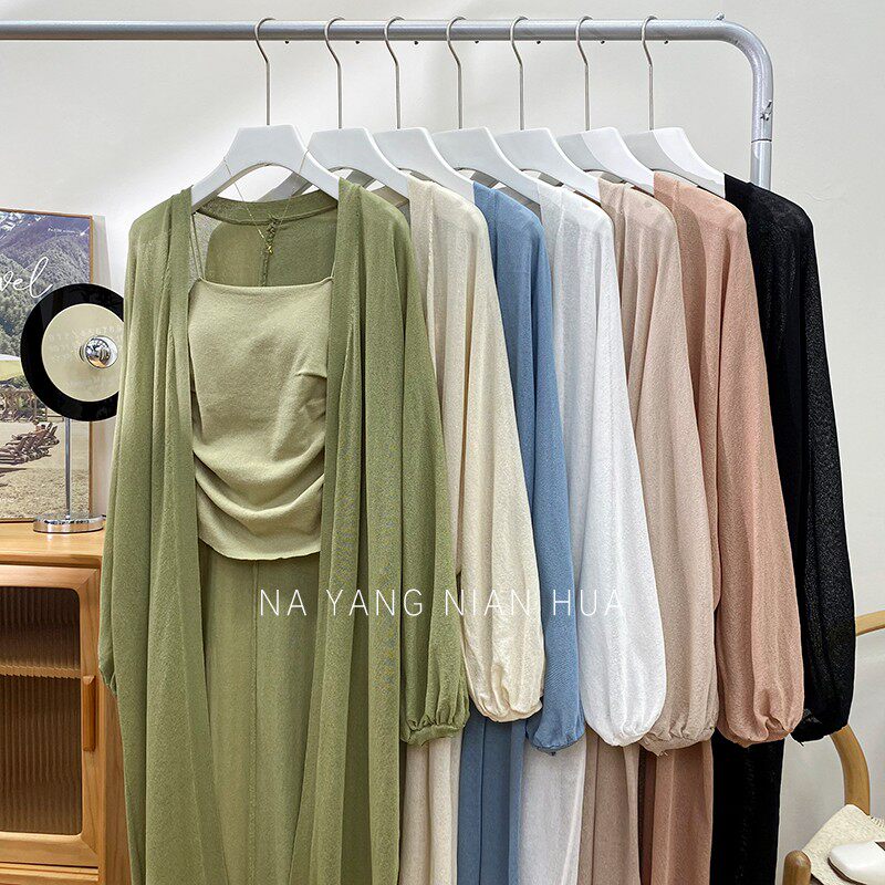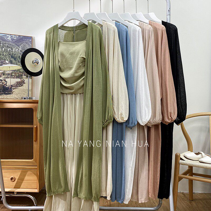 Фонарь, трикотажный легкий и тонкий кардиган, накидка, японские и корейские, защита от солнца