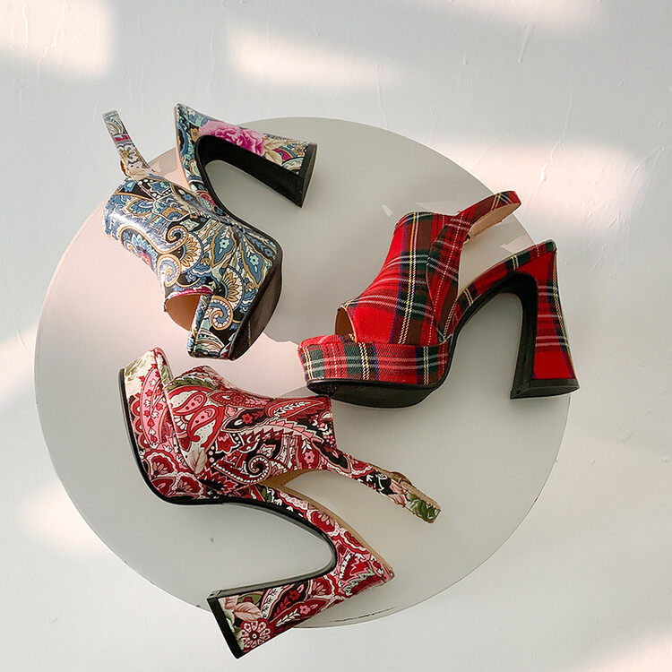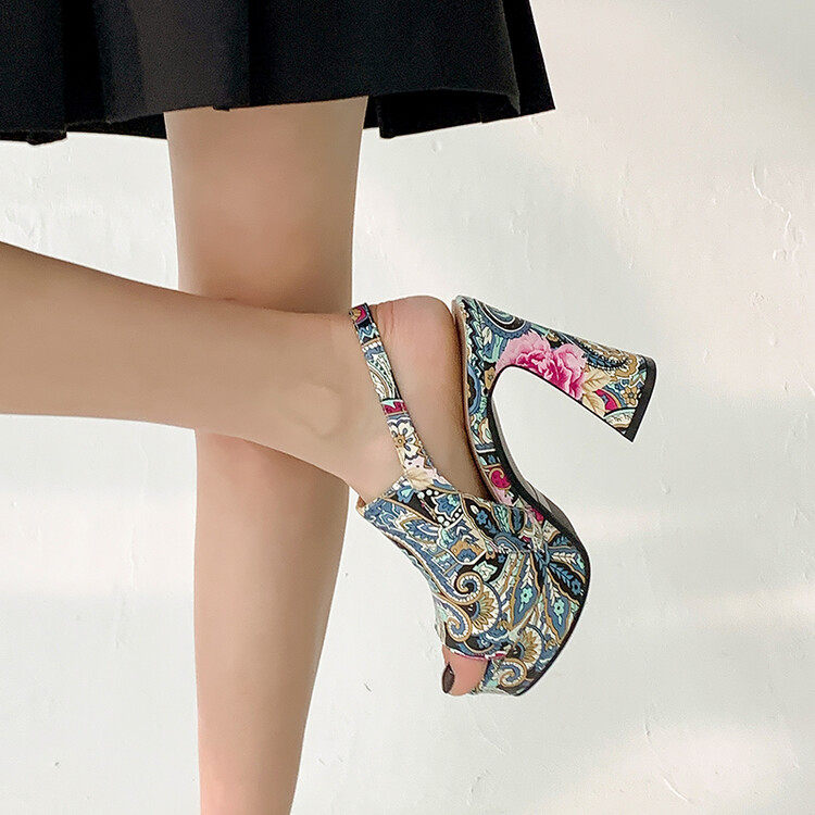 Босоножки, ципао, свадебные туфли, цветочный принт, китайский стиль