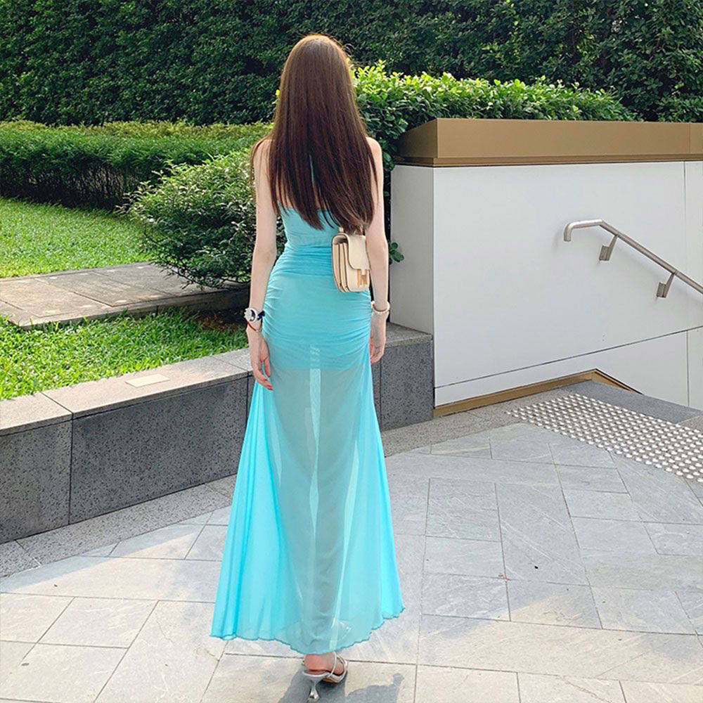Сексуальное женское платье, платье-комбинация, длинная юбка, из фатина, по фигуре, с акцентом на бедрах