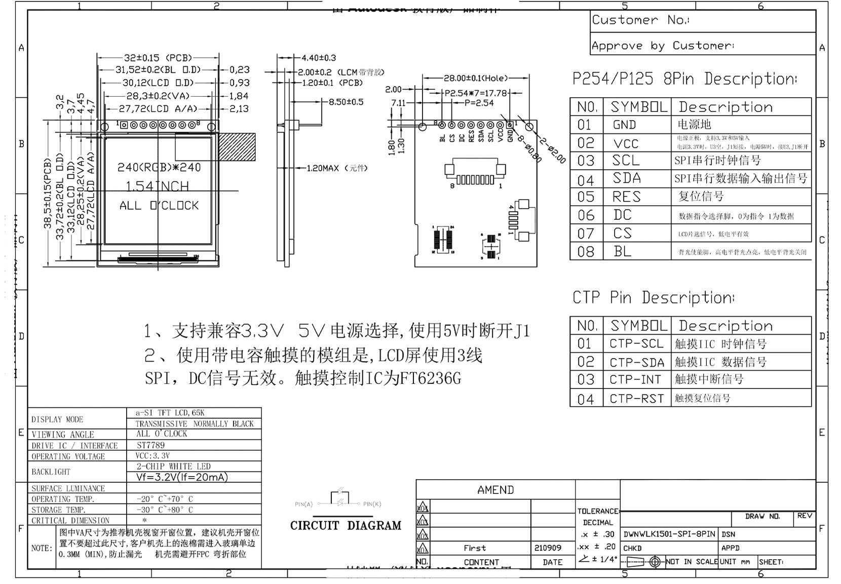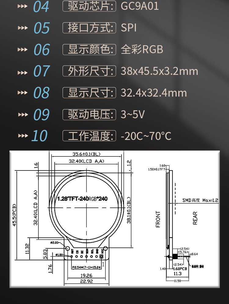 [1.54寸 高清IPS屏模组240*240图纸]