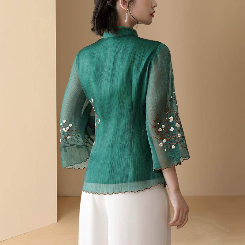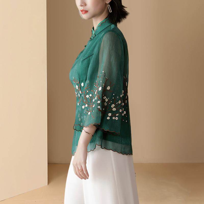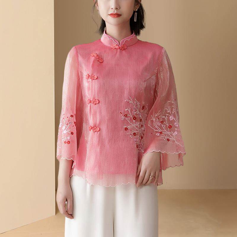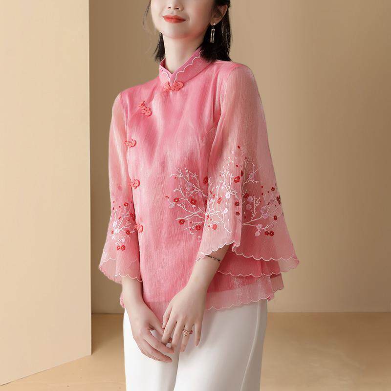 Летняя шифоновая рубашка, китайский стиль, с вышивкой