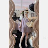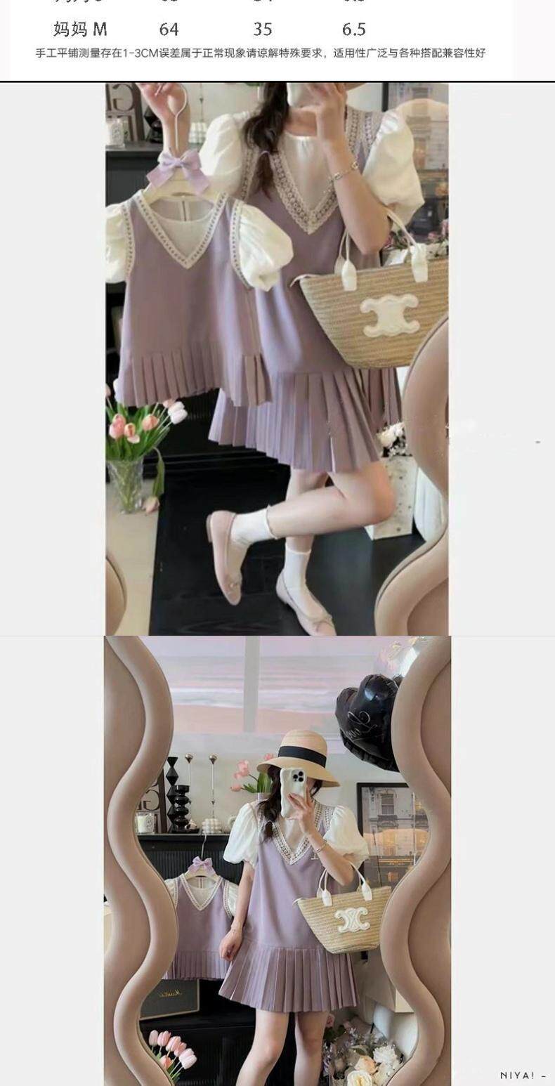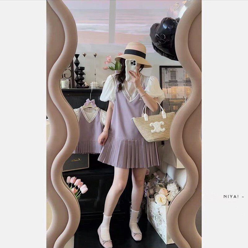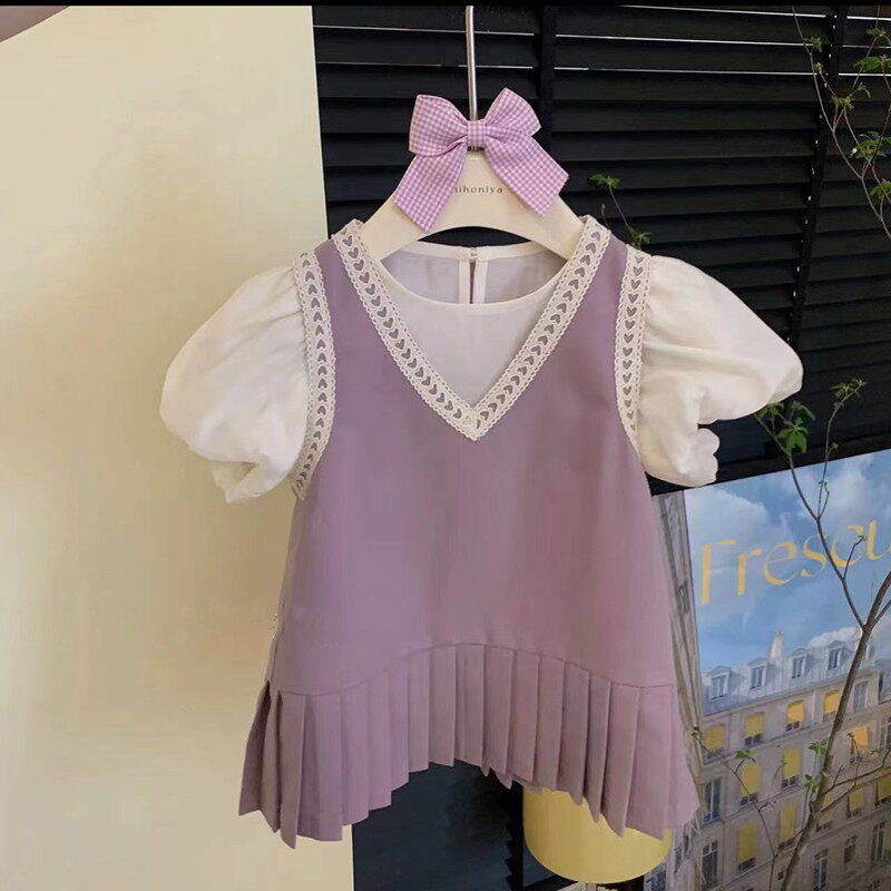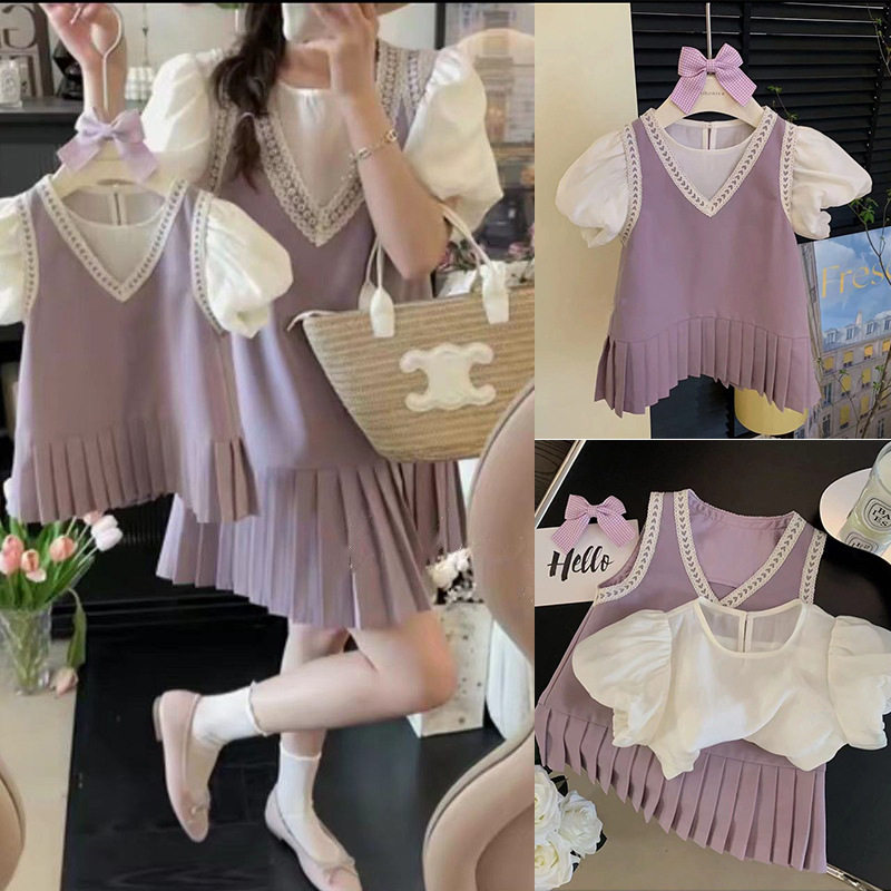 Летнее платье, мини-юбка, розовый комплект, коллекция 2023, семейный стиль, короткий рукав, популярно в интернете