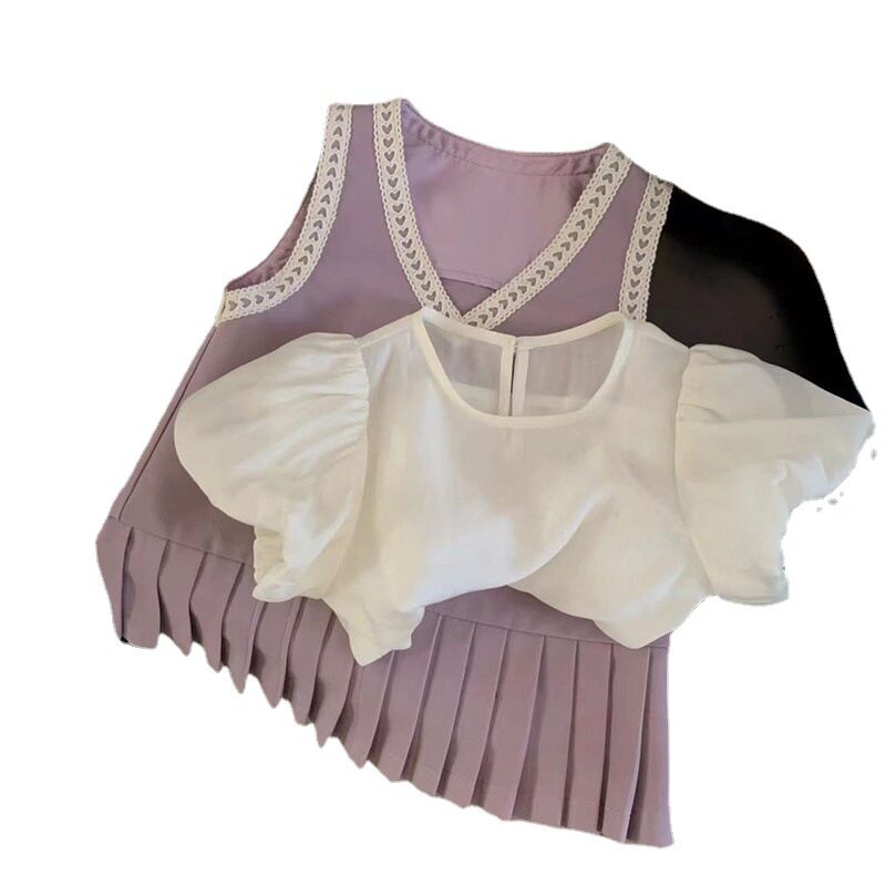 | Цвет: | Фиолетовый костюм (юбка+подкладка), Сиреневое платье-комбинация |