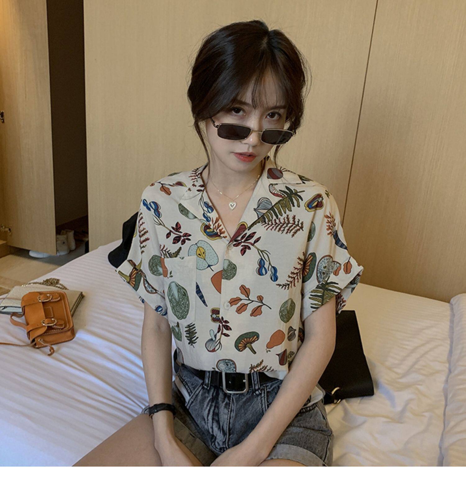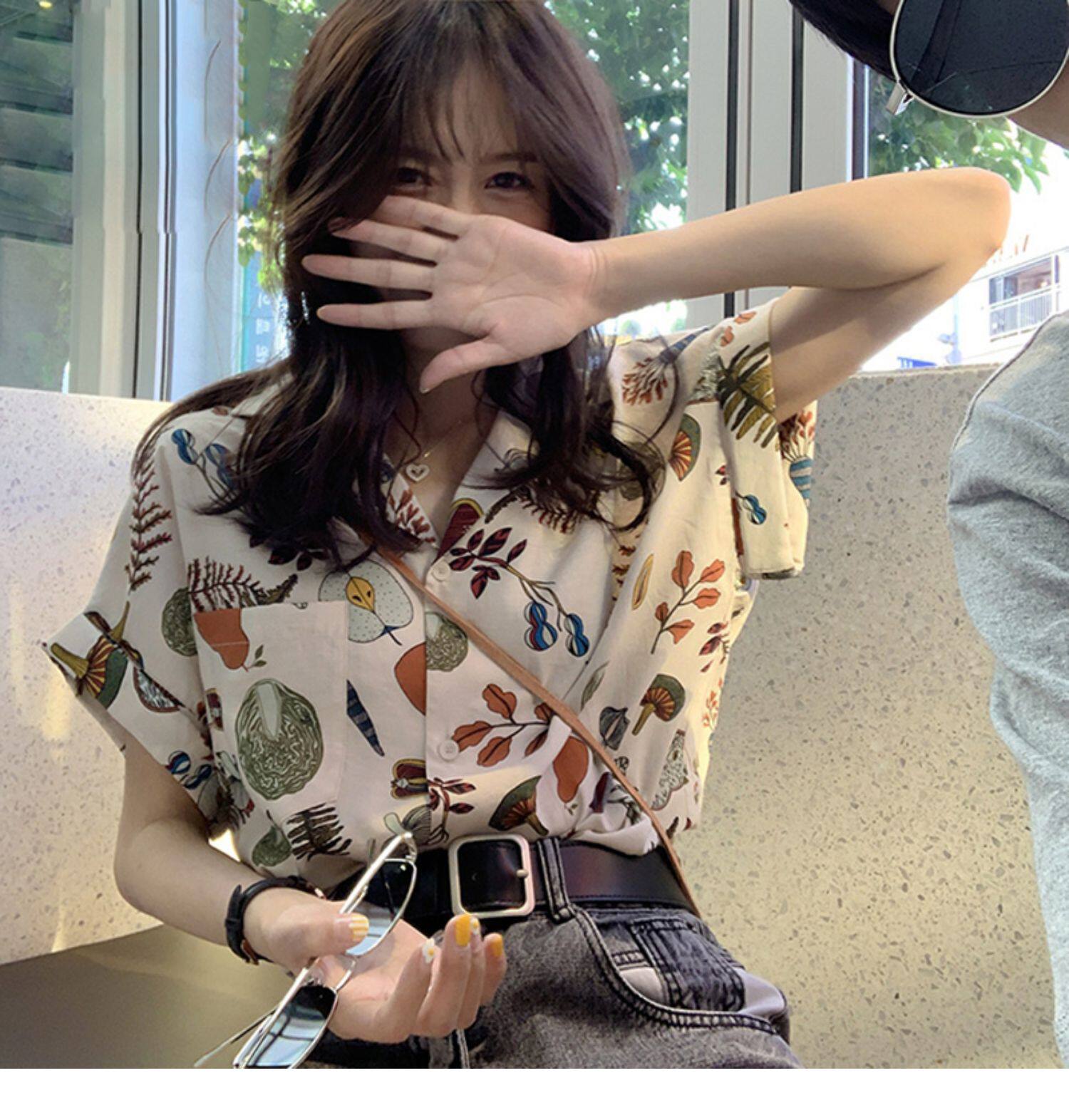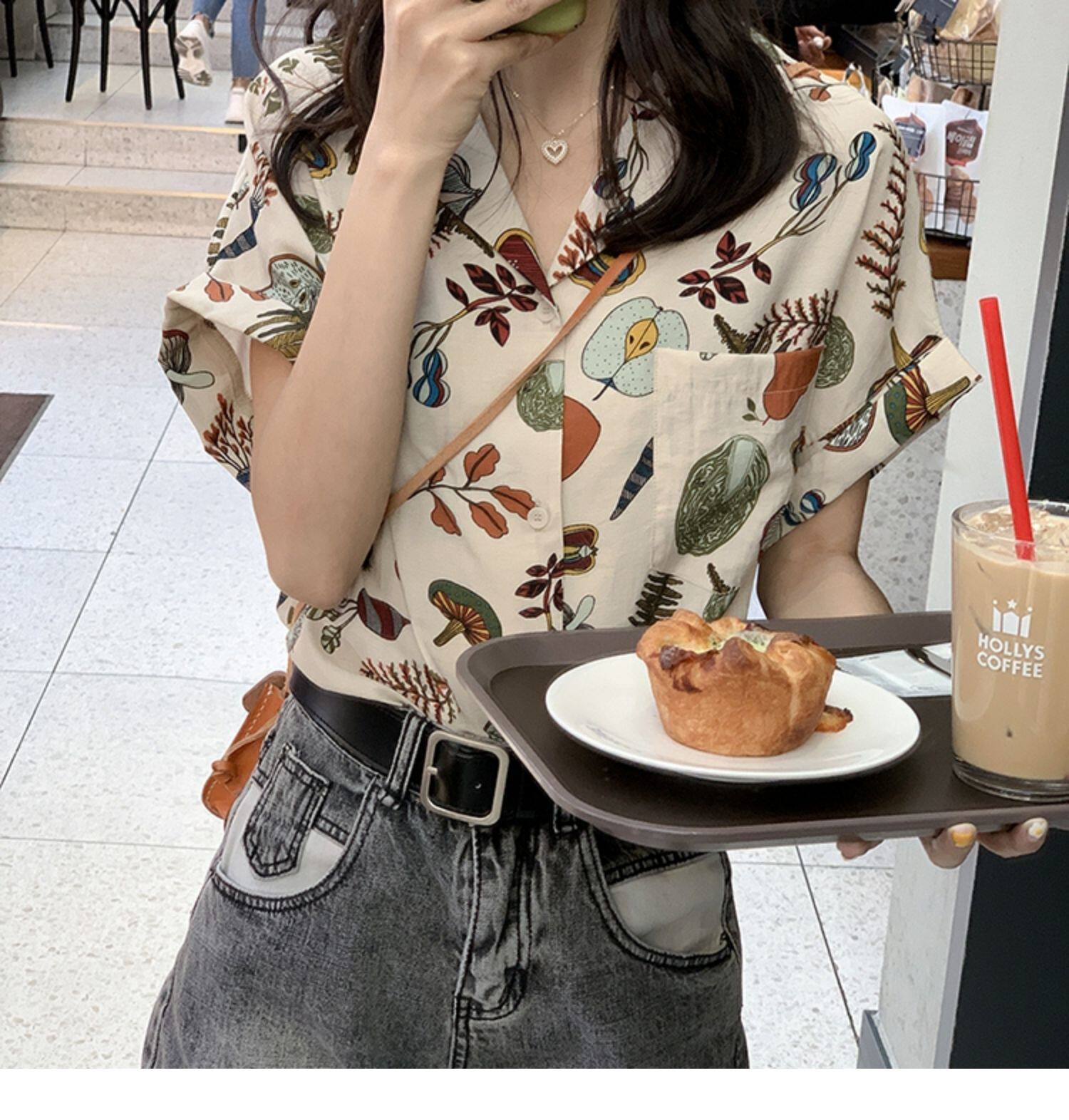 Летняя милая небольшая дизайнерская короткая рубашка, 2024 года, тренд сезона, цветочный принт