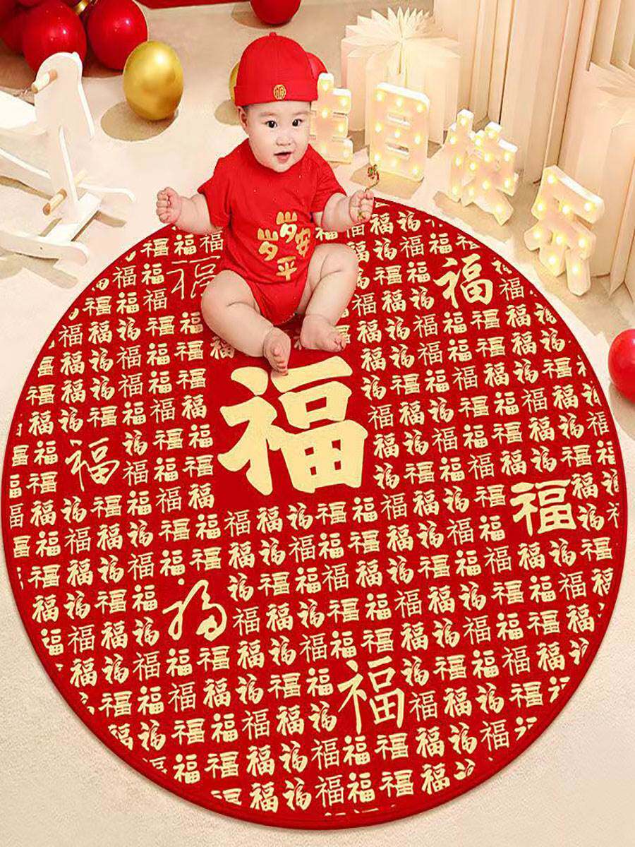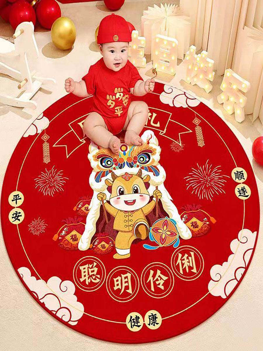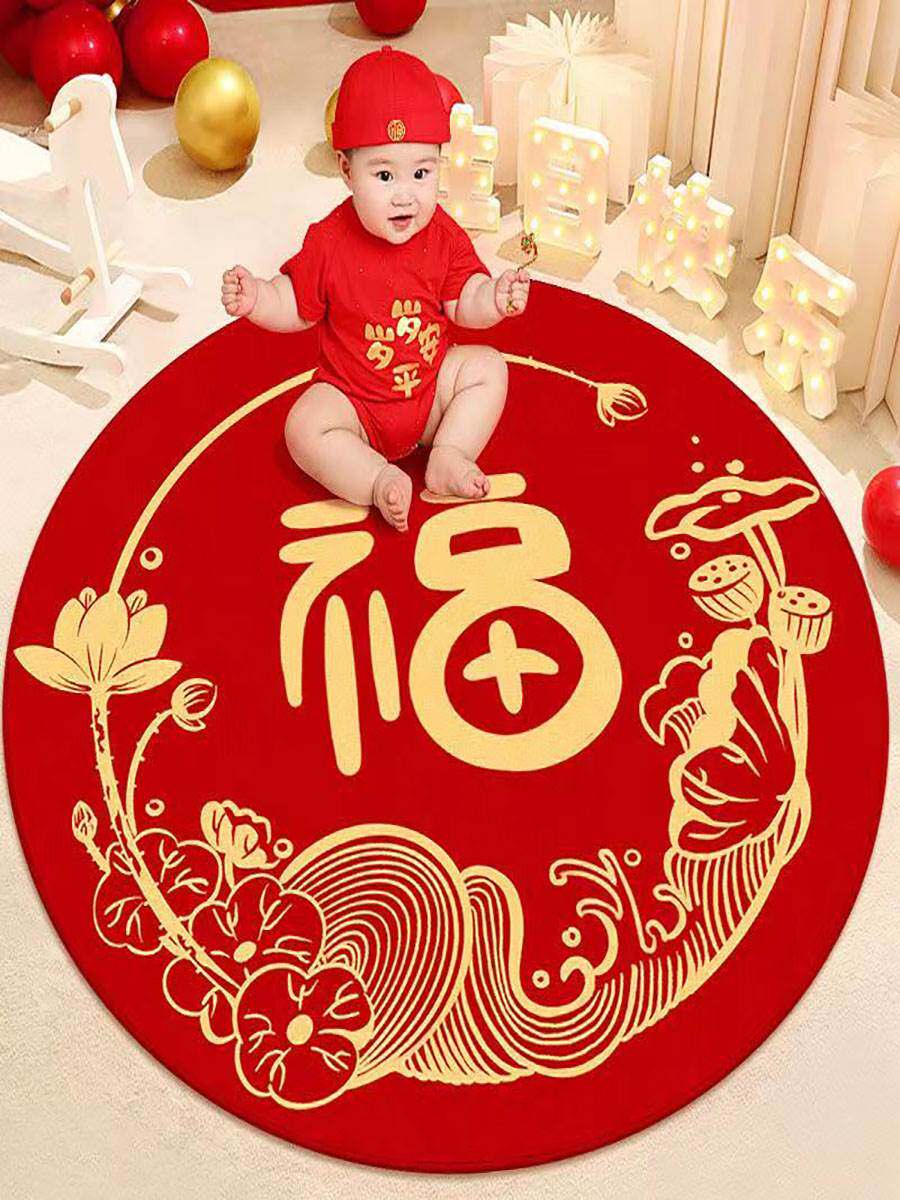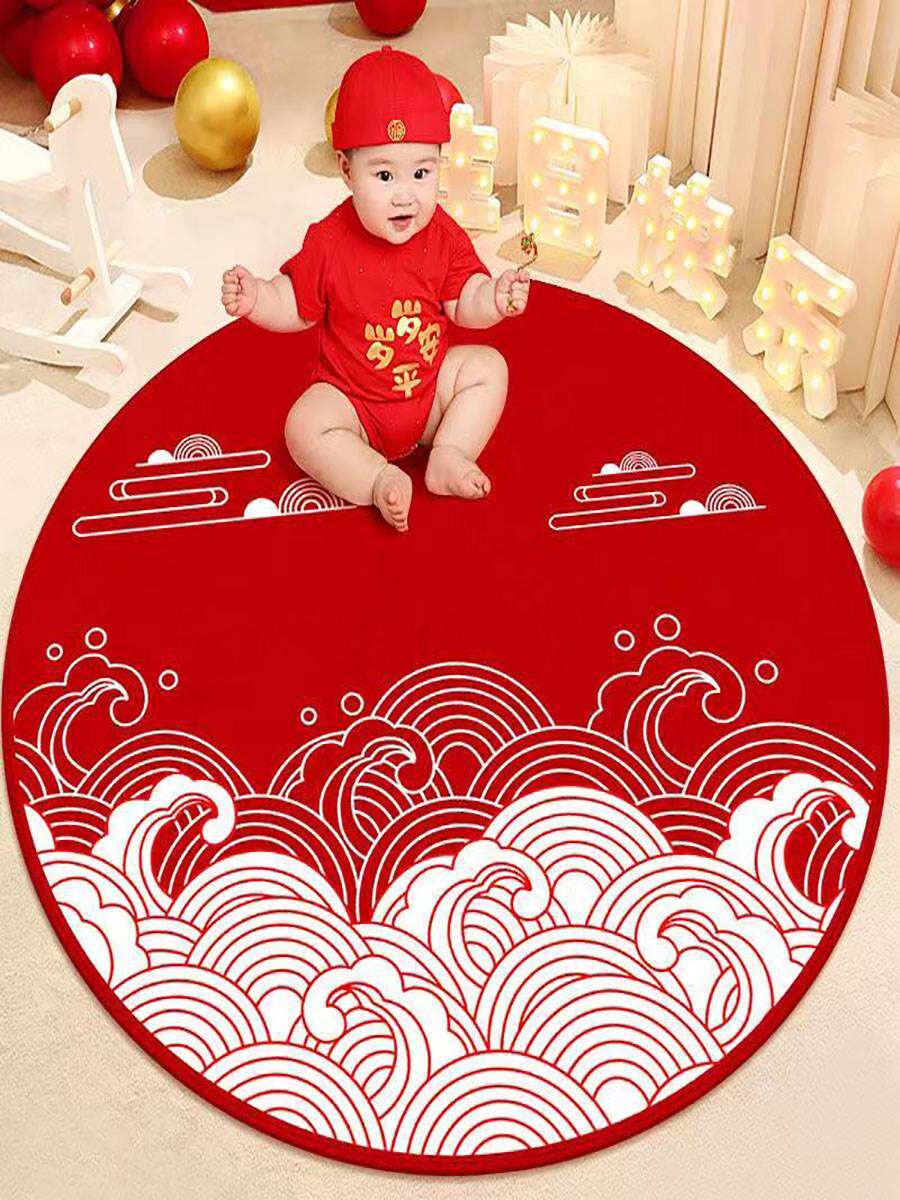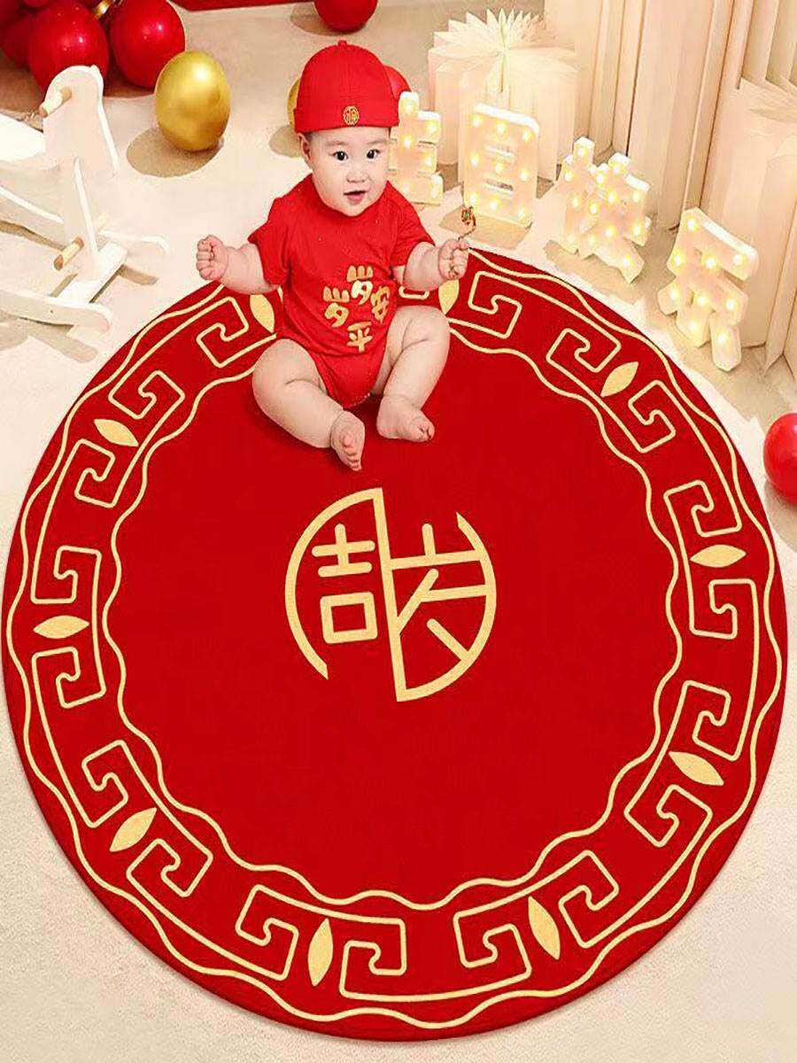 Детский ковер, круглый красный праздничнный игровой коврик