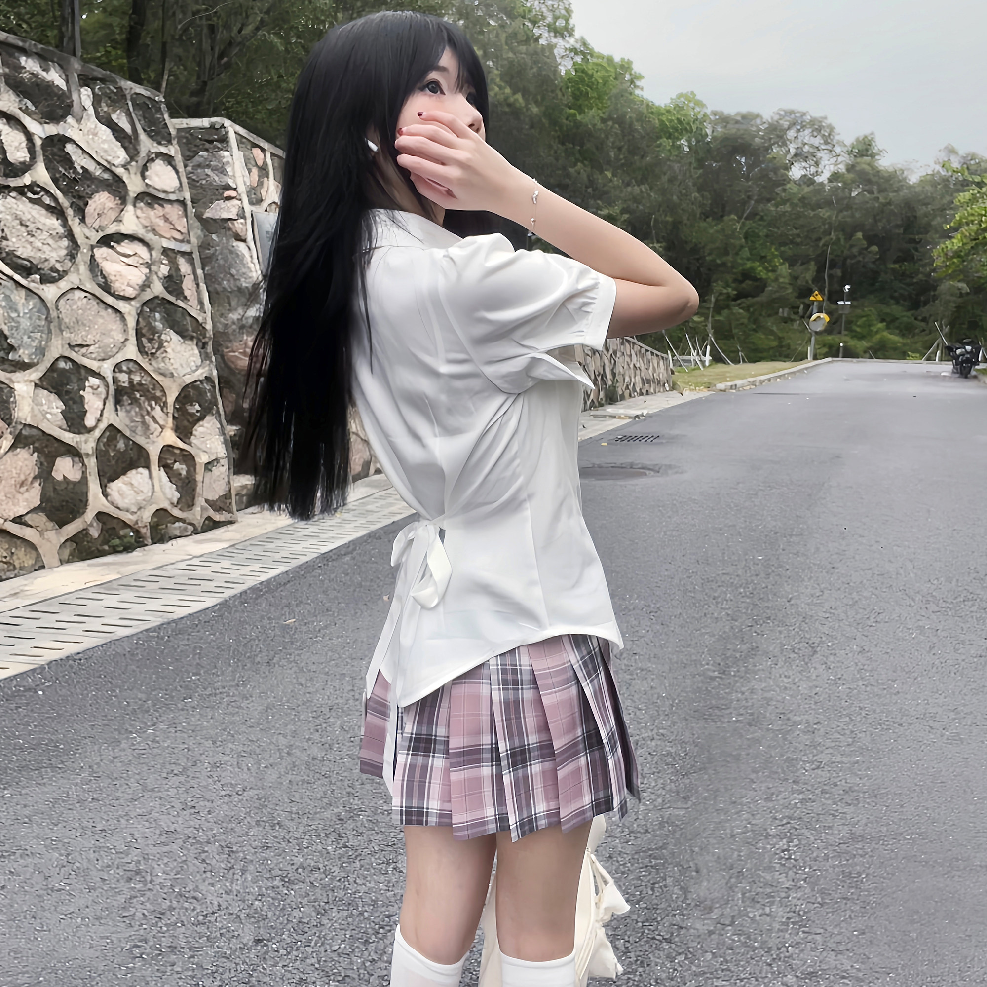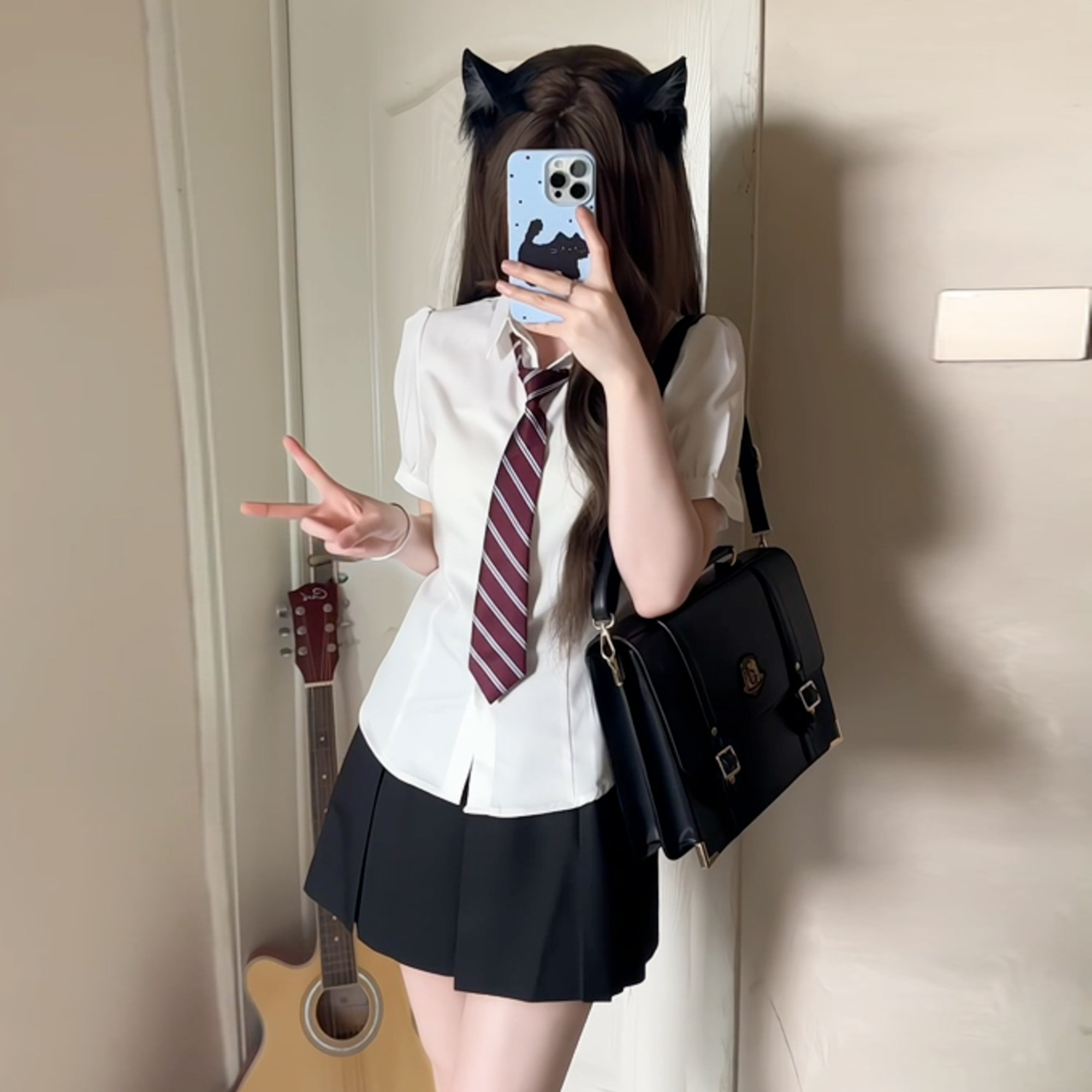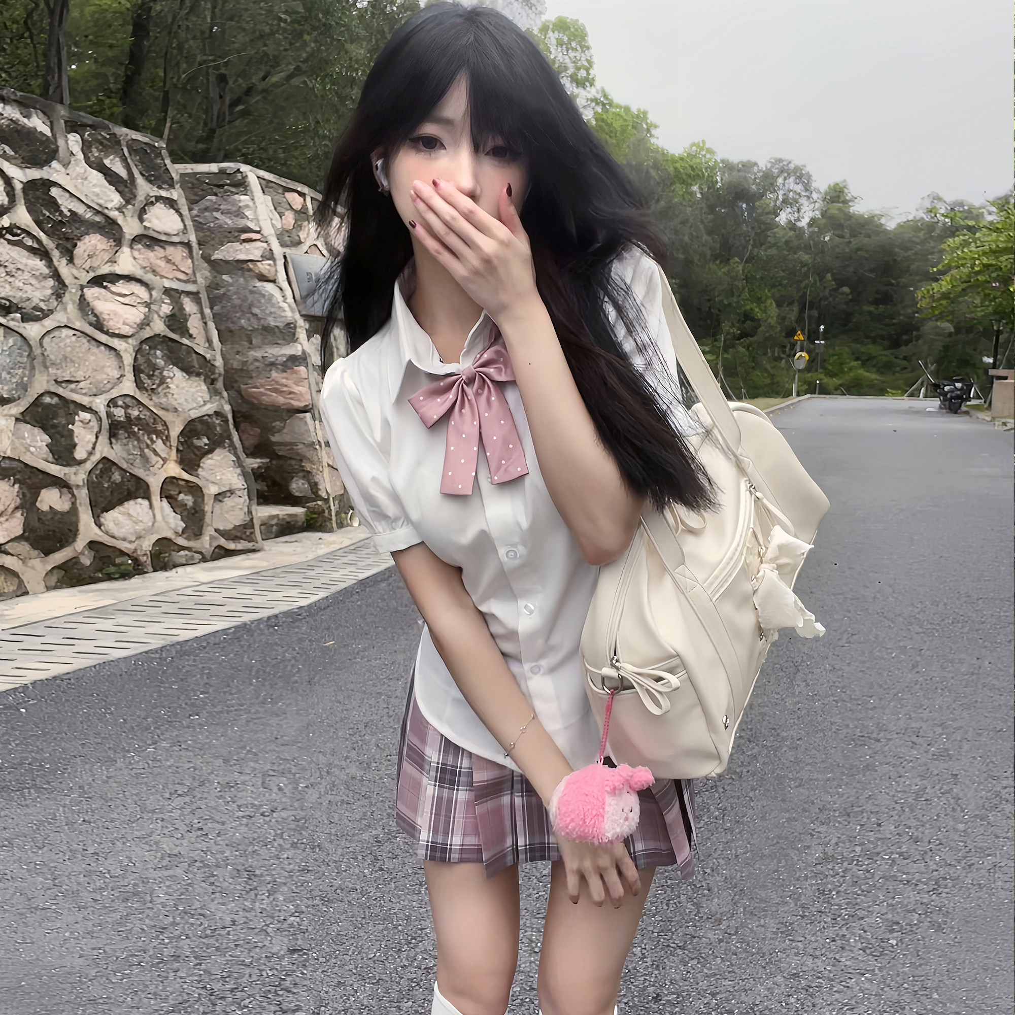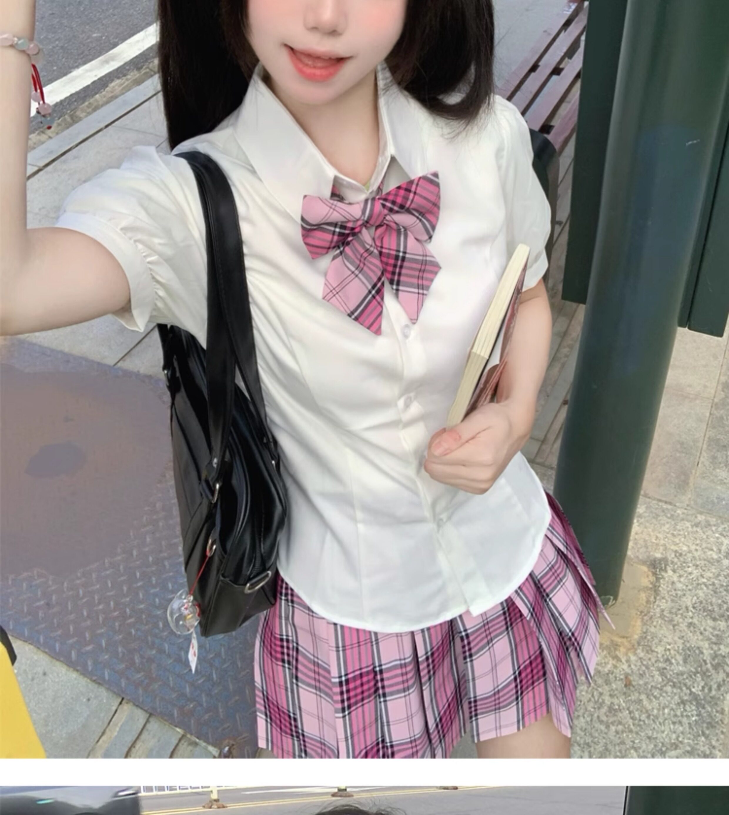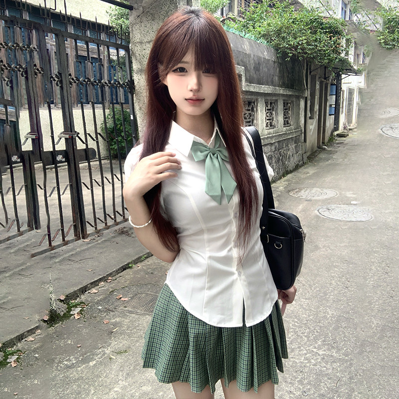 花千猪 Оригинальная рубашка, японский корсет, студенческая юбка в складку, ремень, рукава фонарики, короткий рукав