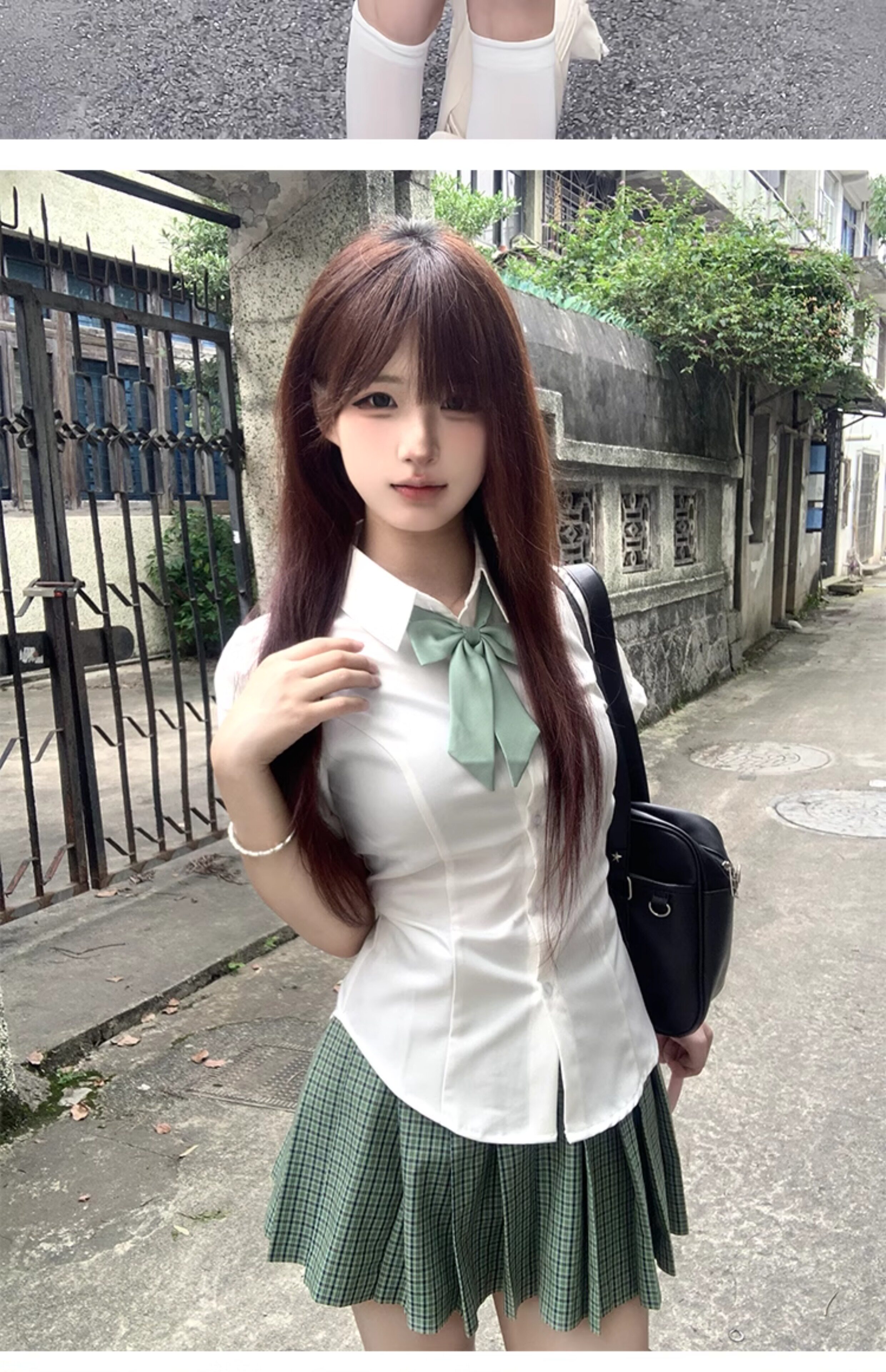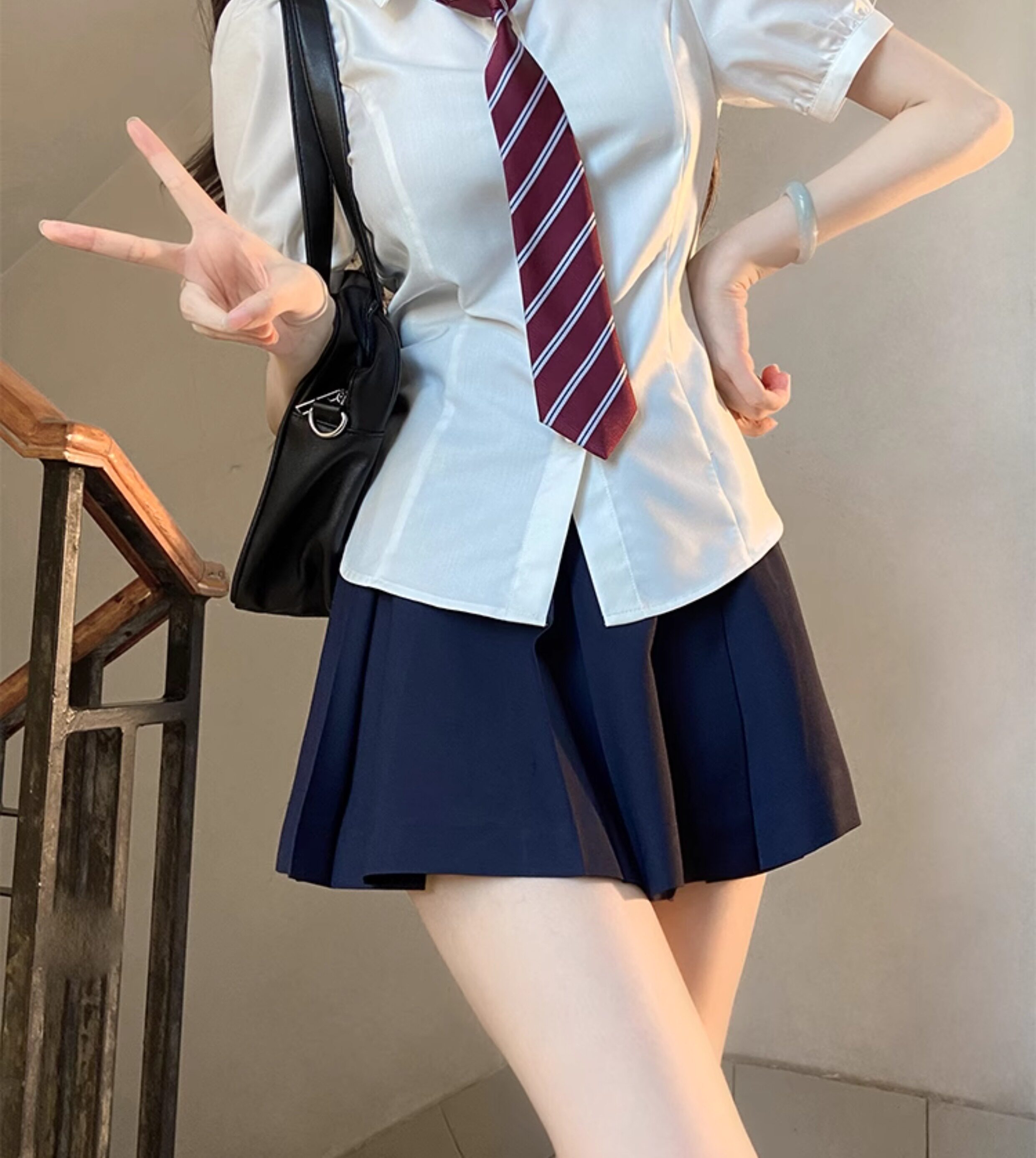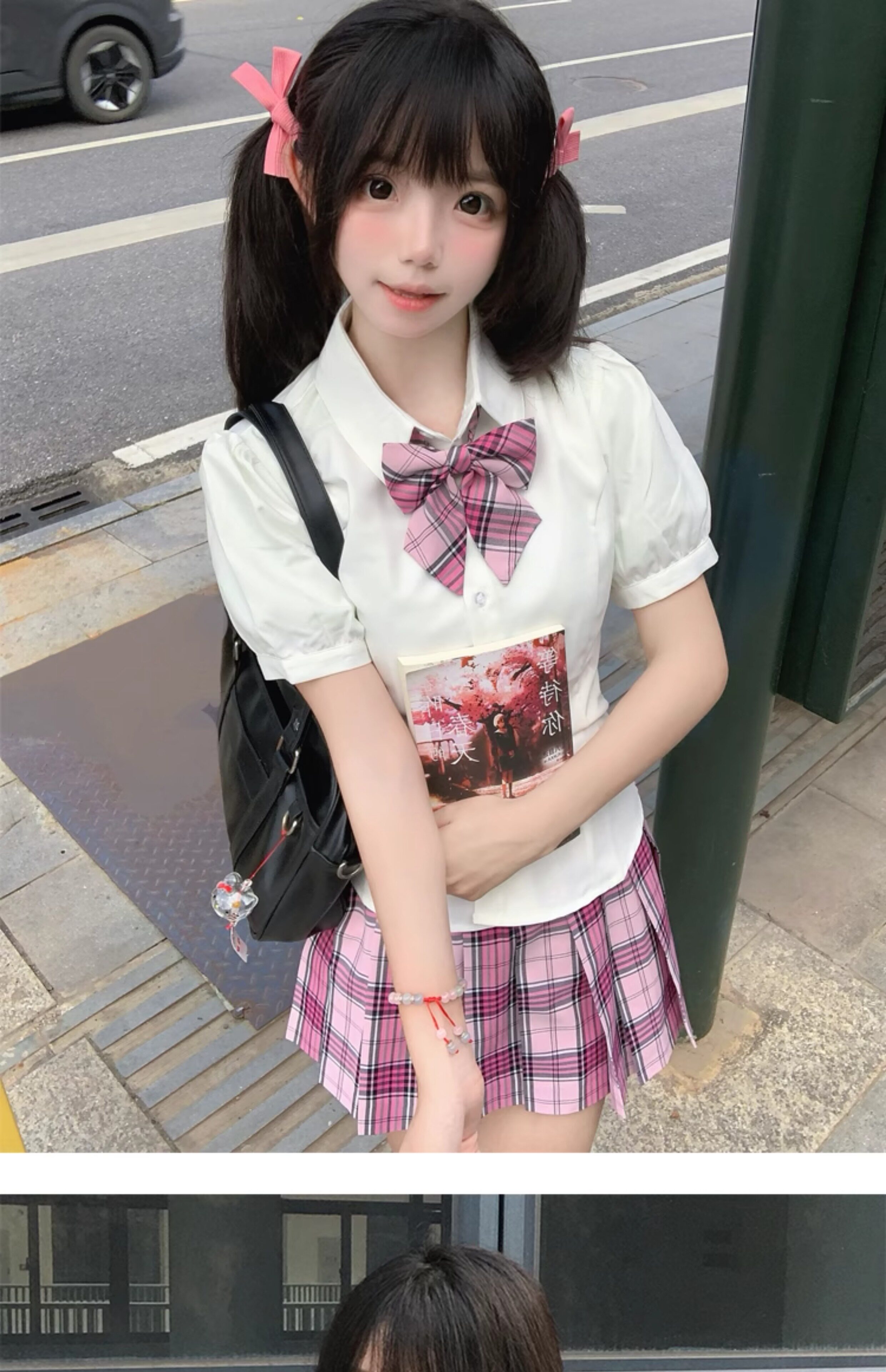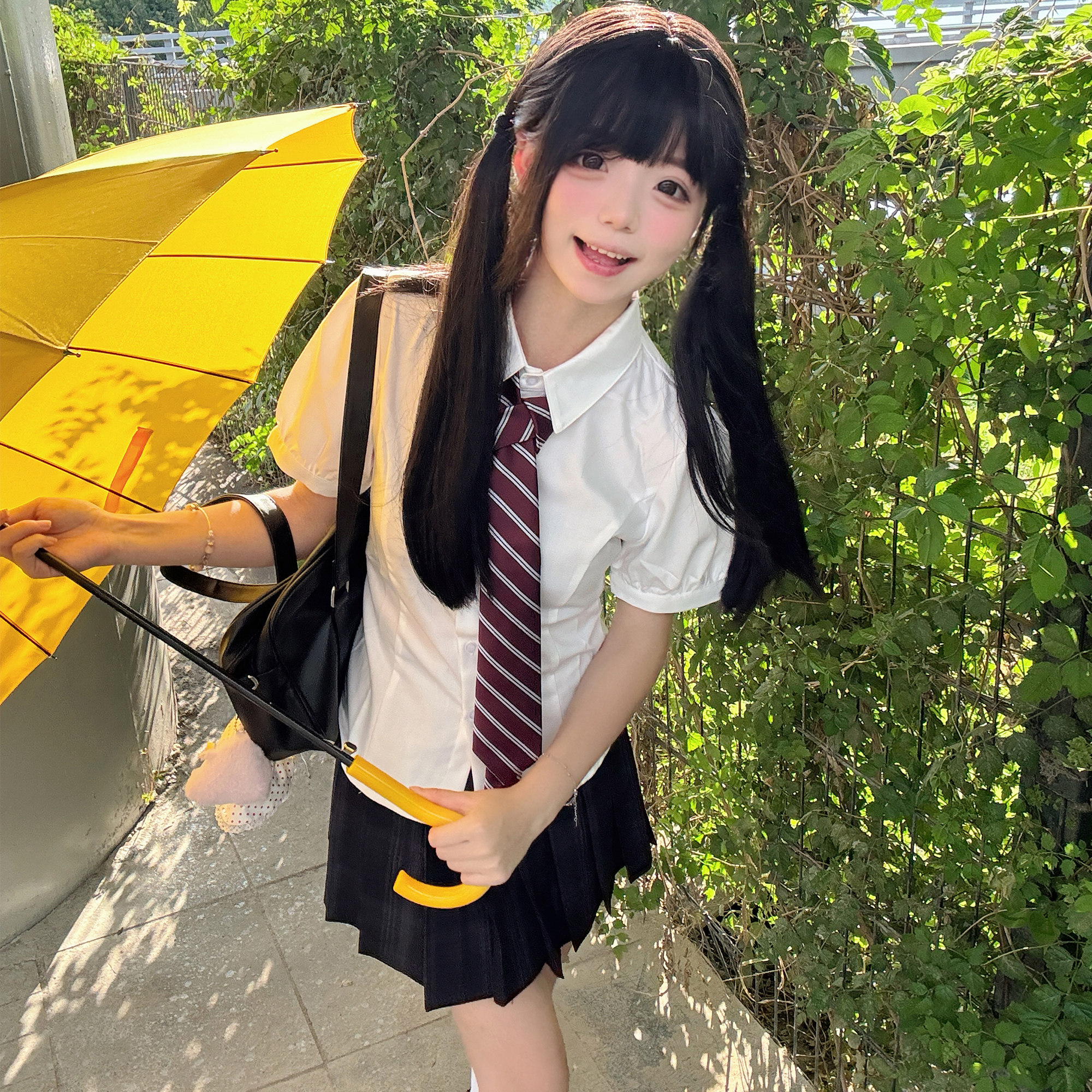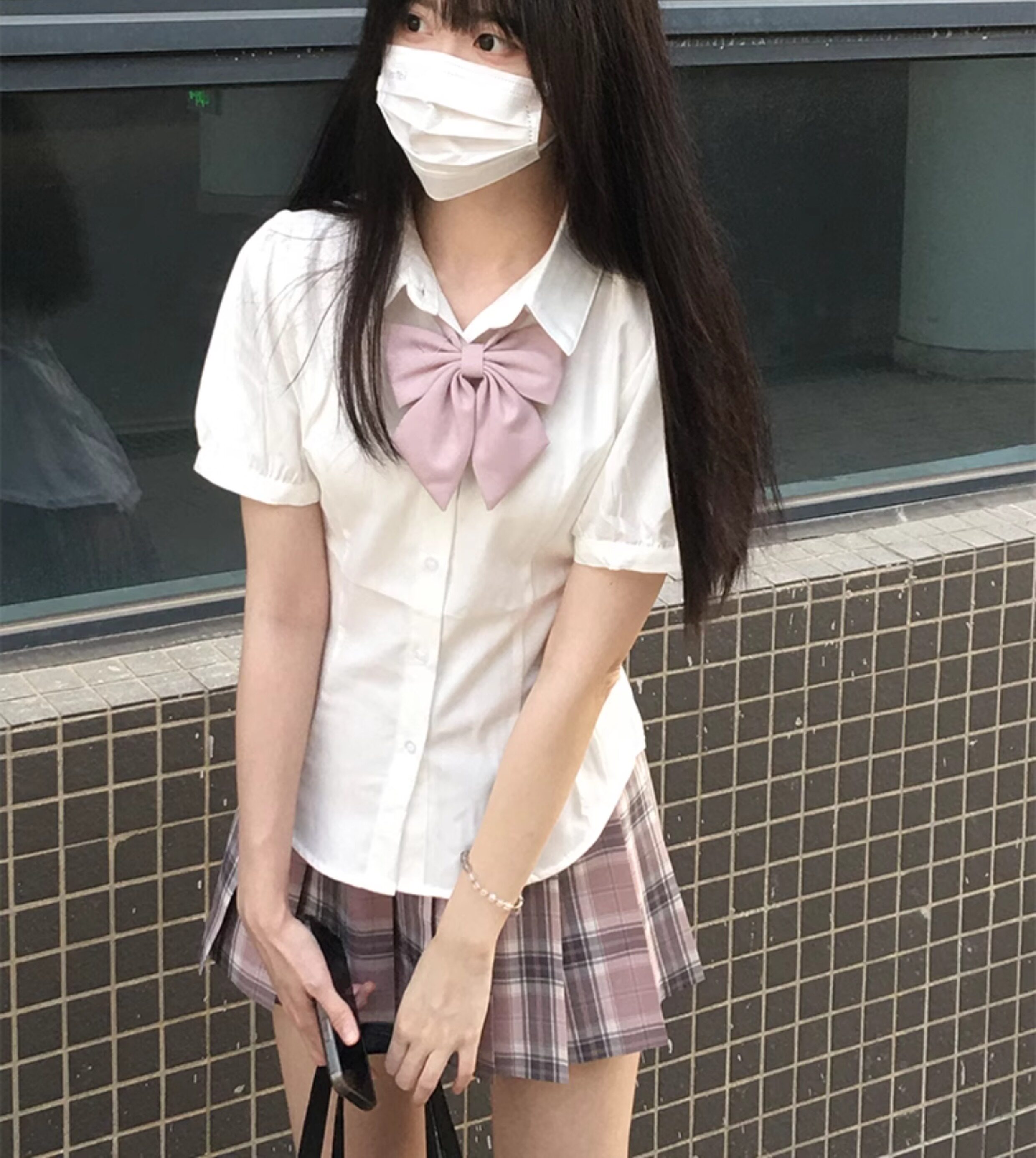 花千猪 Оригинальная рубашка, японский корсет, студенческая юбка в складку, ремень, рукава фонарики, короткий рукав