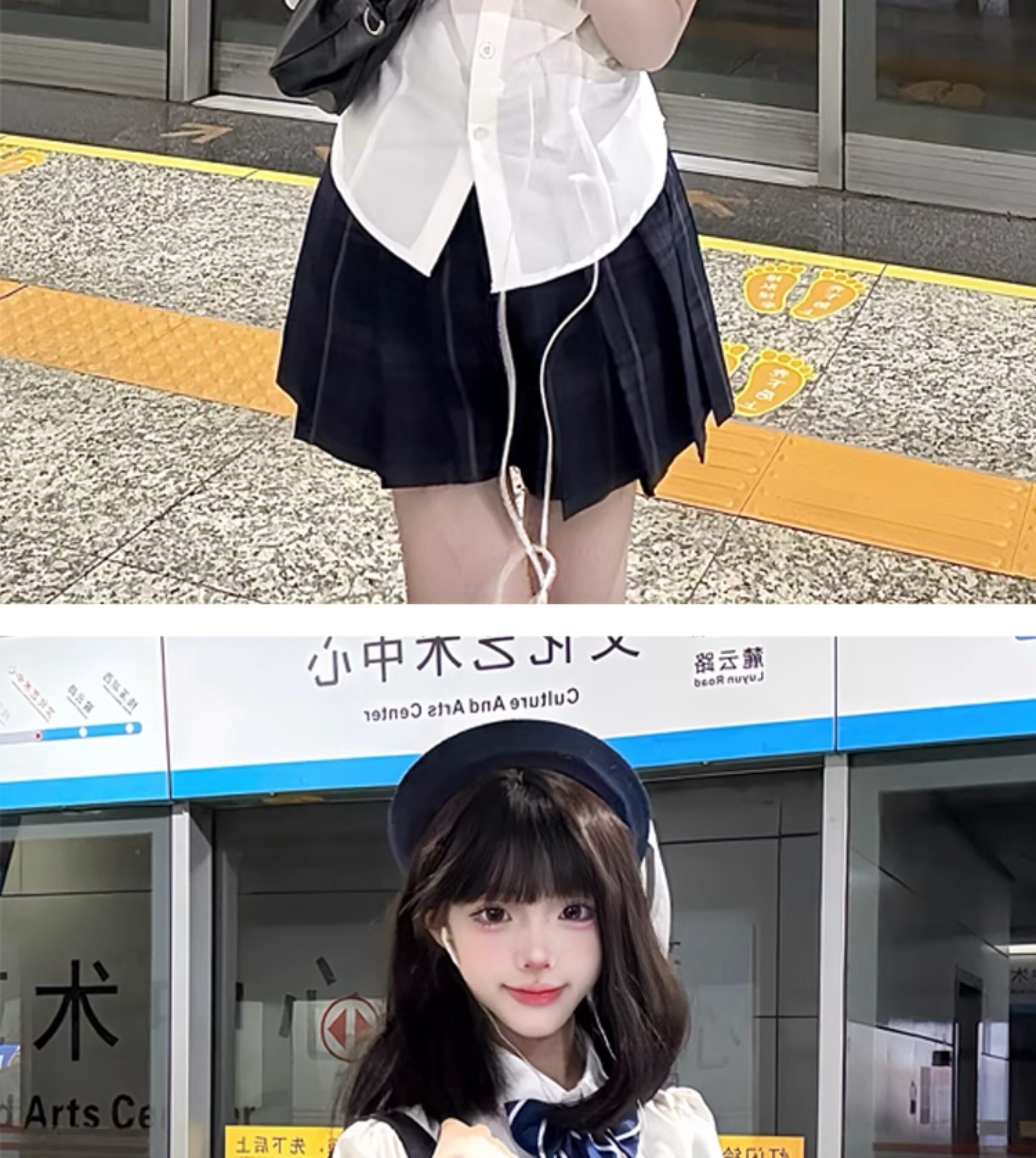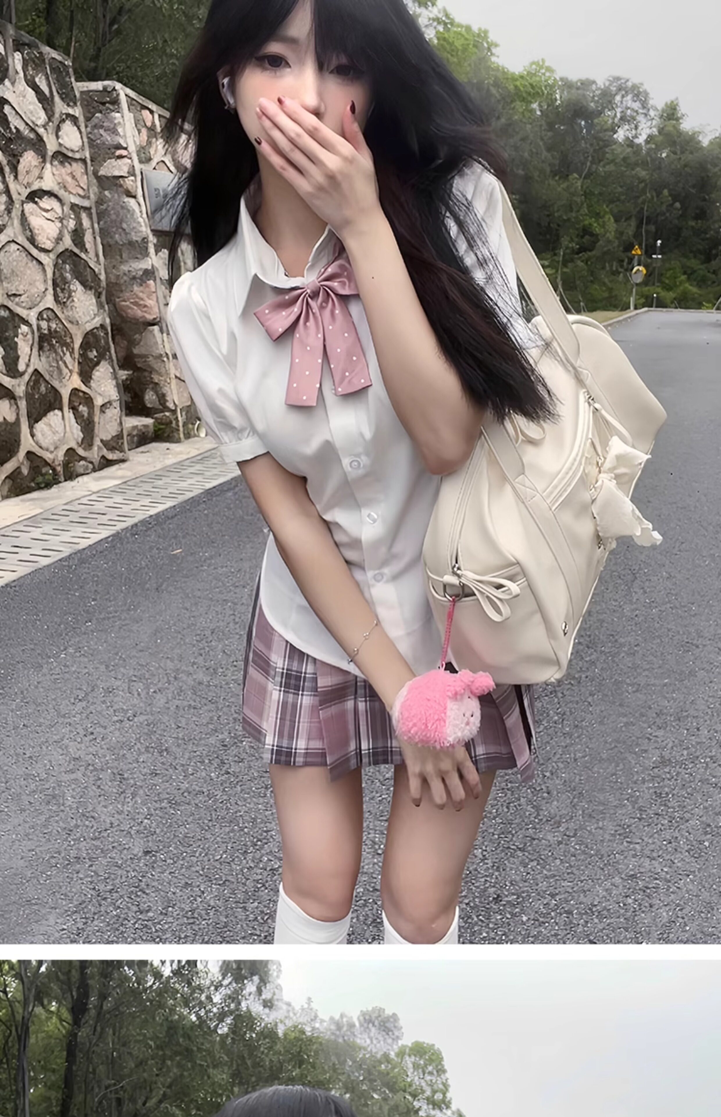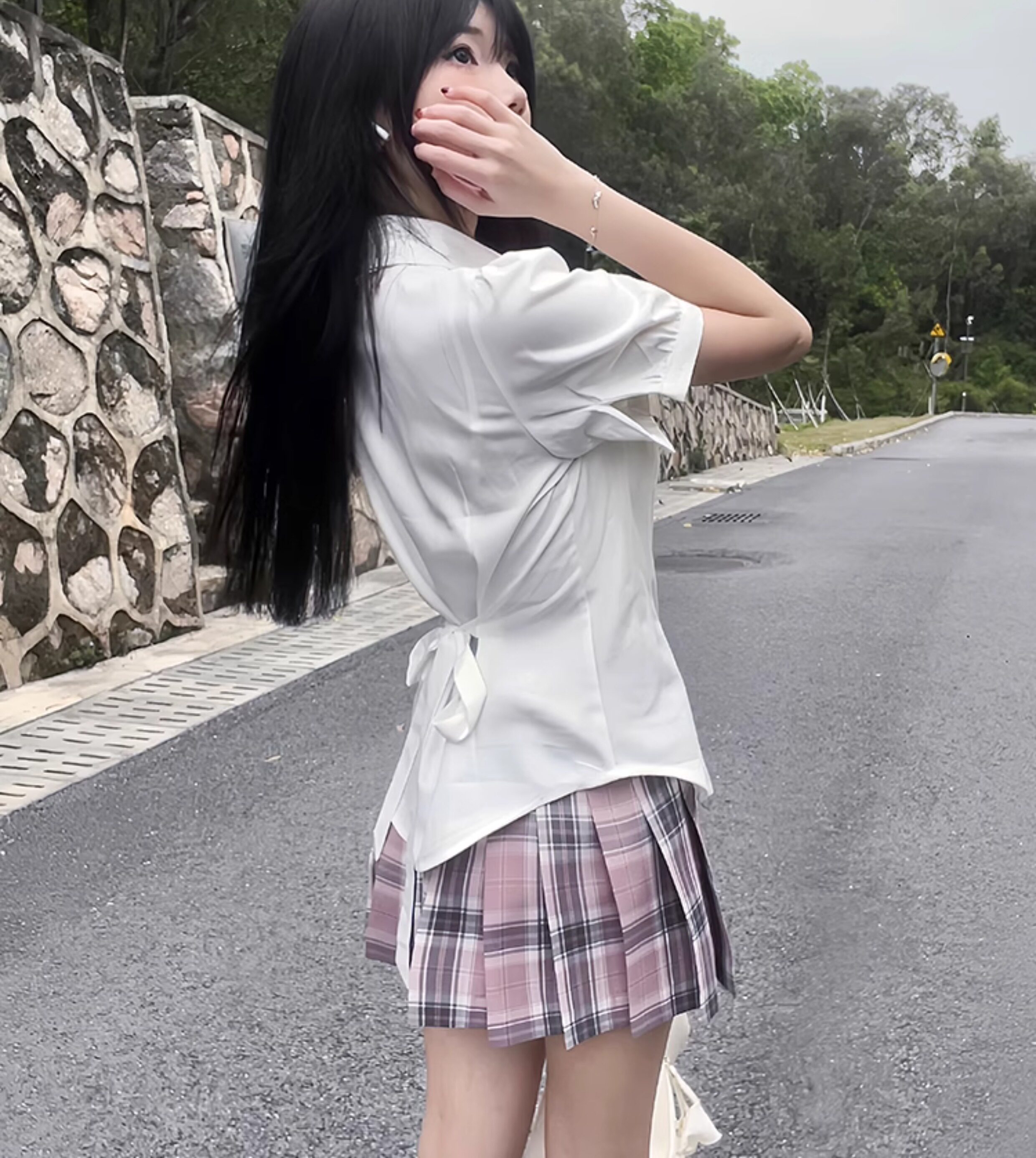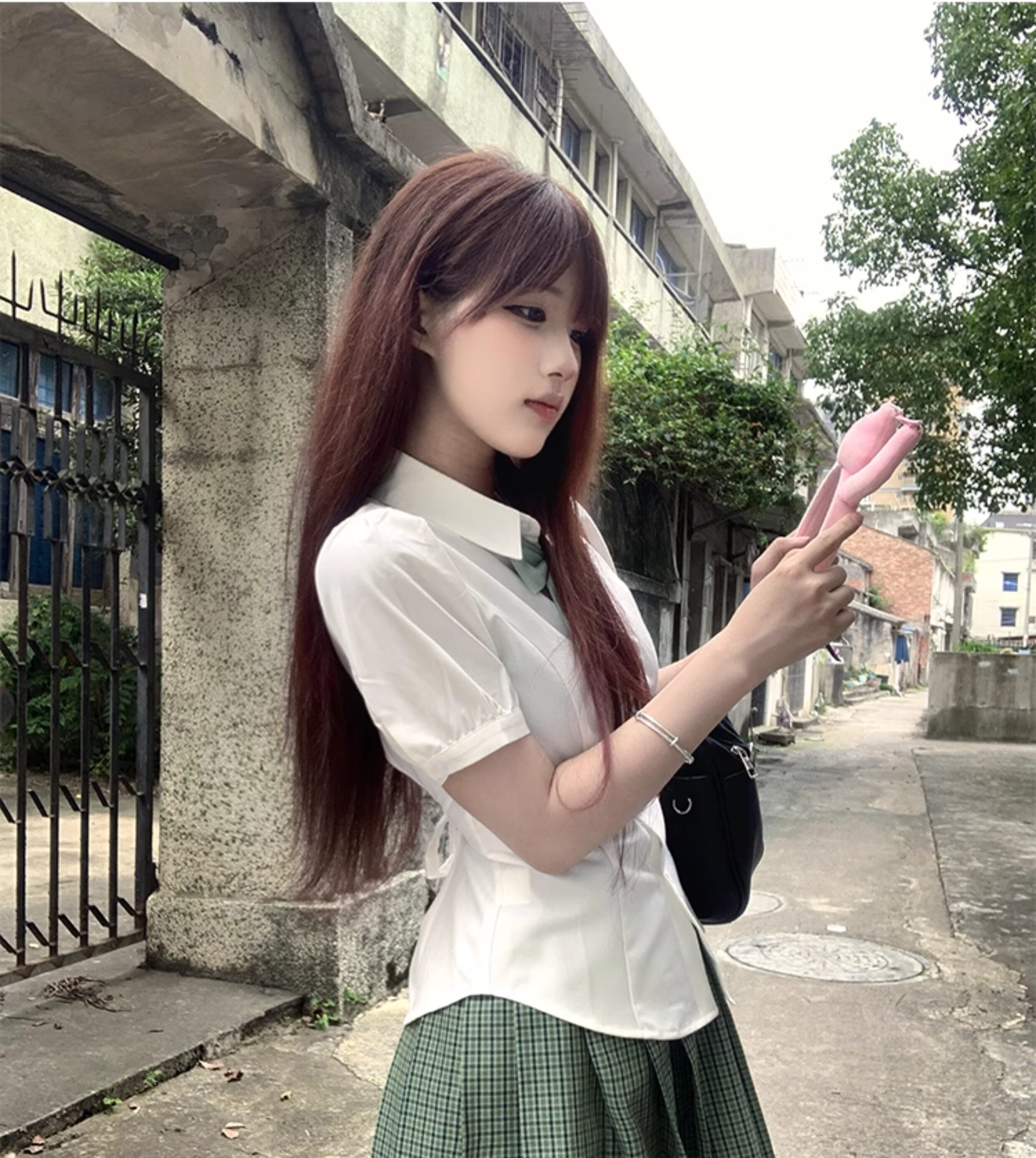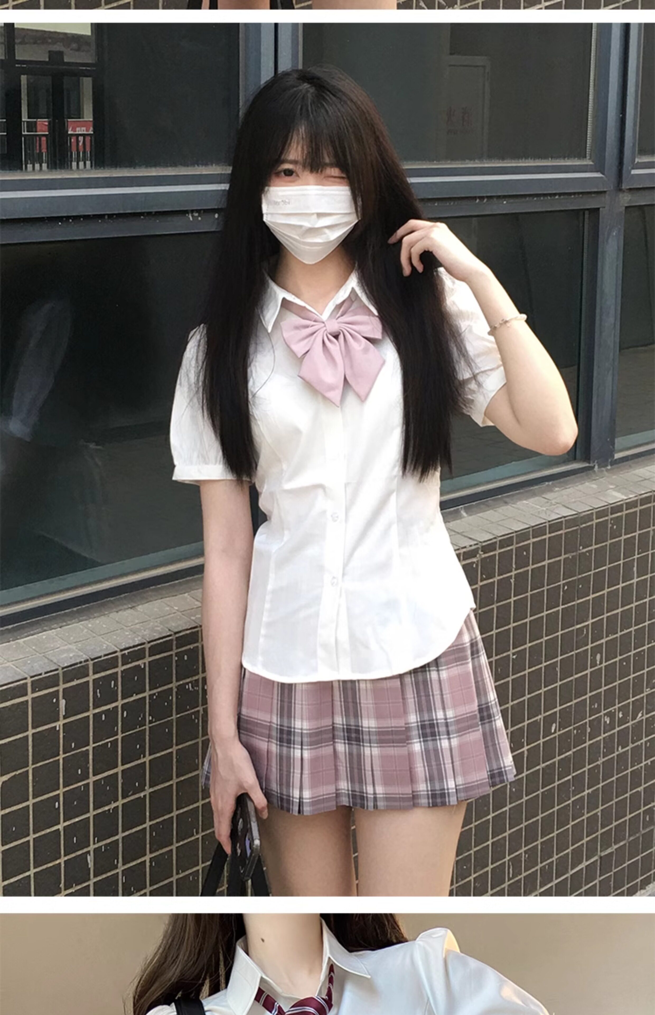 花千猪 Оригинальная рубашка, японский корсет, студенческая юбка в складку, ремень, рукава фонарики, короткий рукав