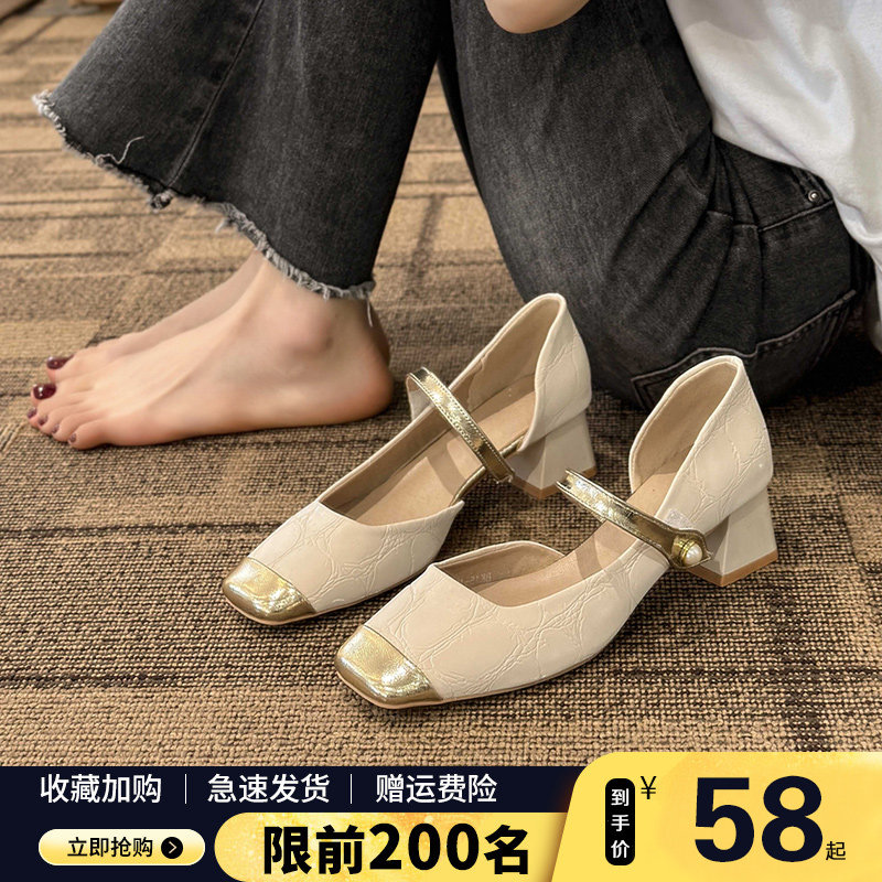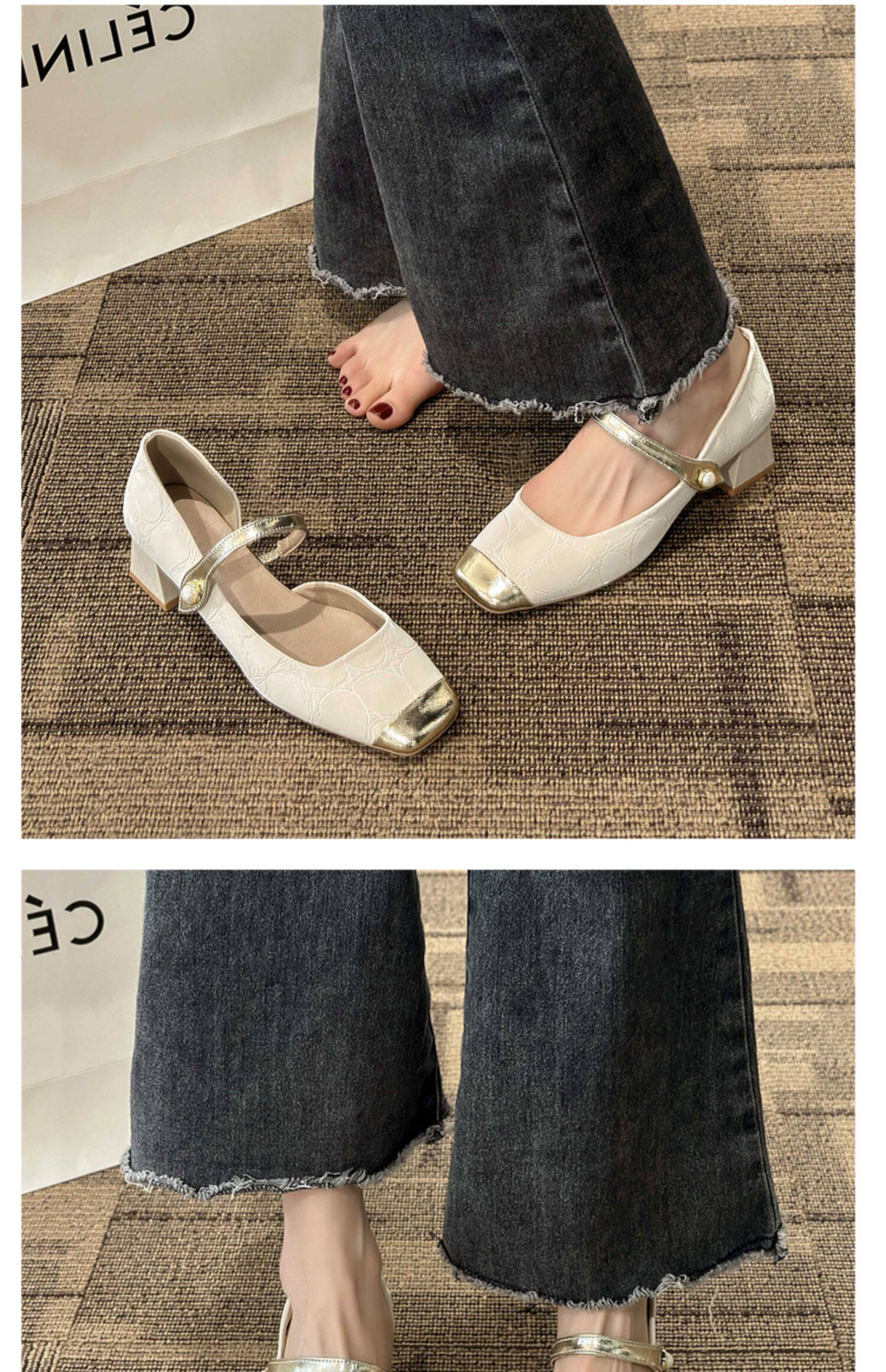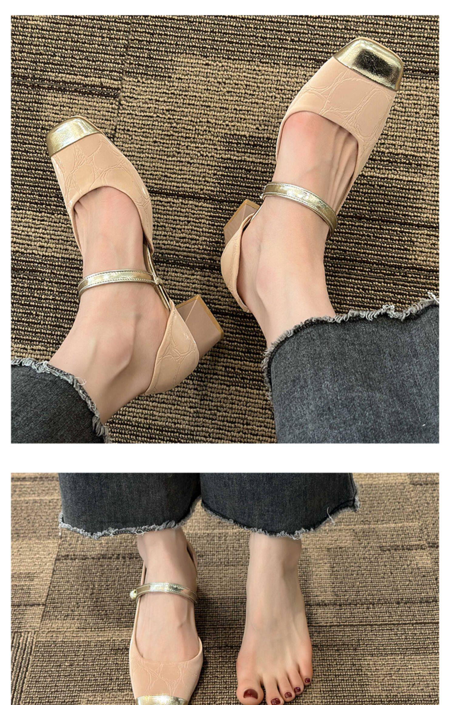 Ретро французские густые каблуки магических наклеек обуви