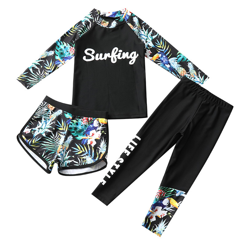Детский купальник, лонгслив для мальчиков, быстросохнущие раздельные штаны для плавания, комплект, японские и корейские, защита от солнца, 3 предмета