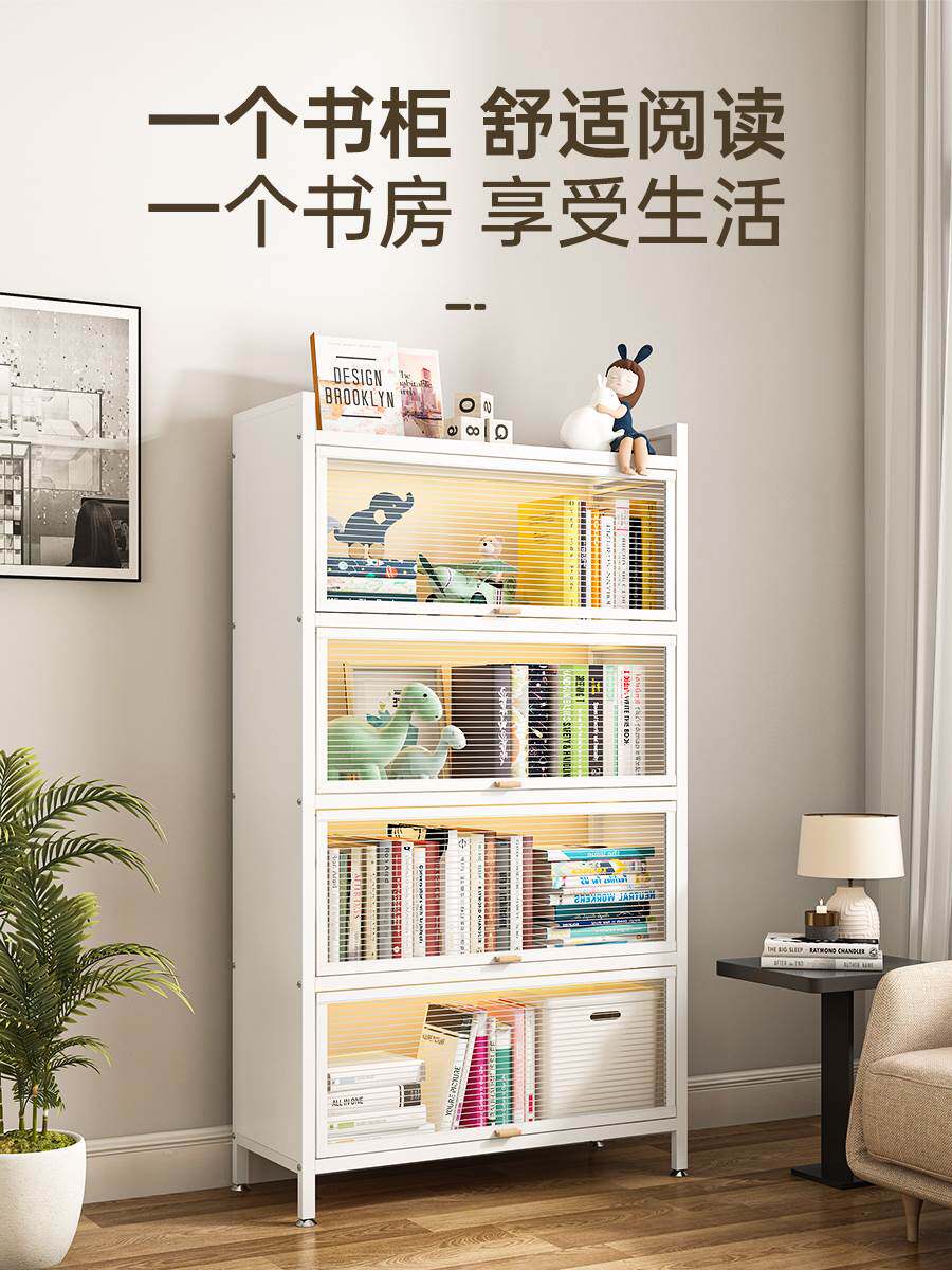 Домашние стальные книжные шкафы на стене просто пылепроницаемый шкаф для хранения детей с дверным железным книжным магазином учебного зала Хранилища хранения