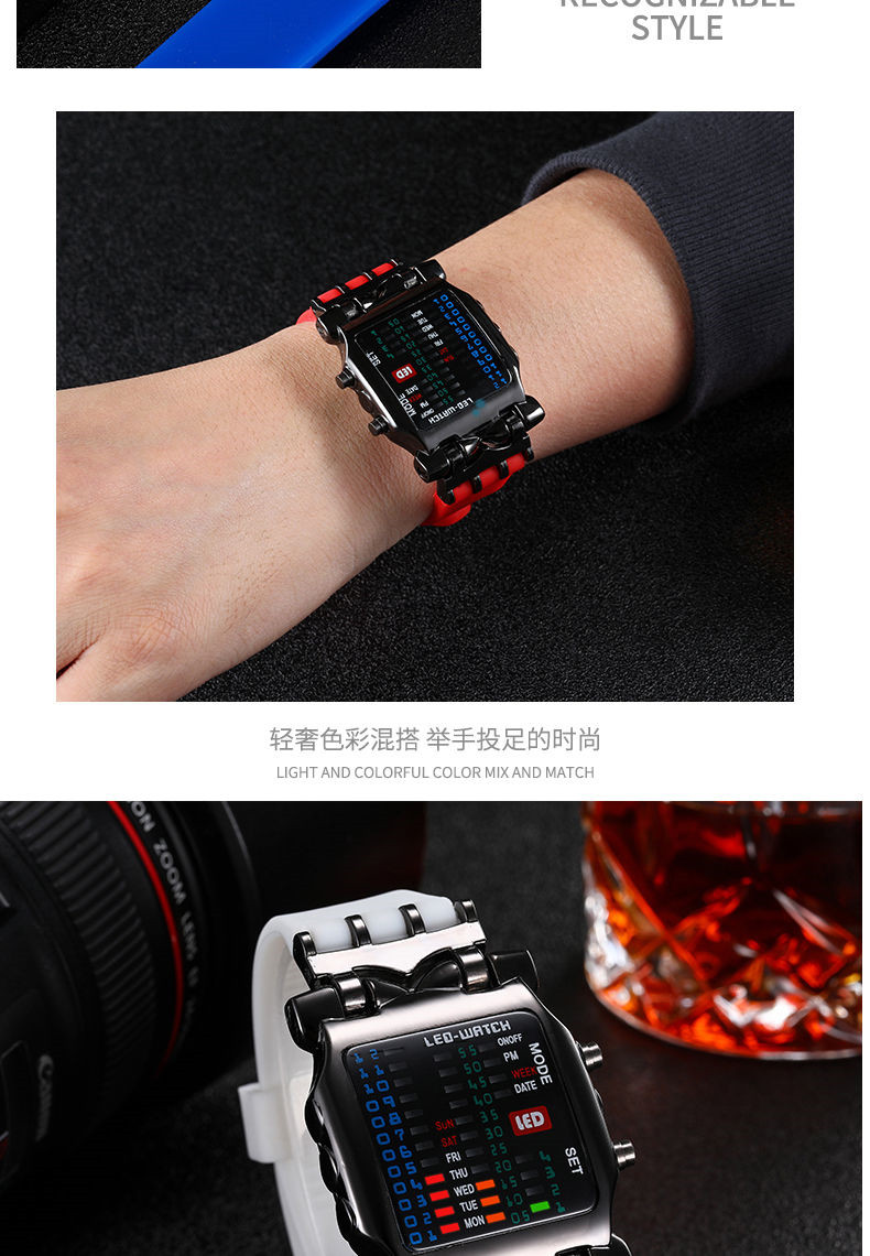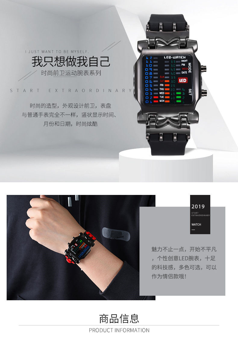 Универсальные водонепроницаемые мужские часы, модные трендовые неоновые спортивные цифровые часы, простой и элегантный дизайн