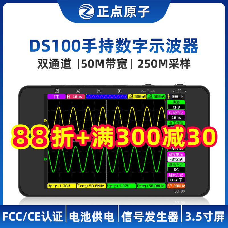 Точечный атомный DS100 Руночный цифровой осциллограф Двойной канал мини -малый портативный инструмент Авто восстановление 50 м