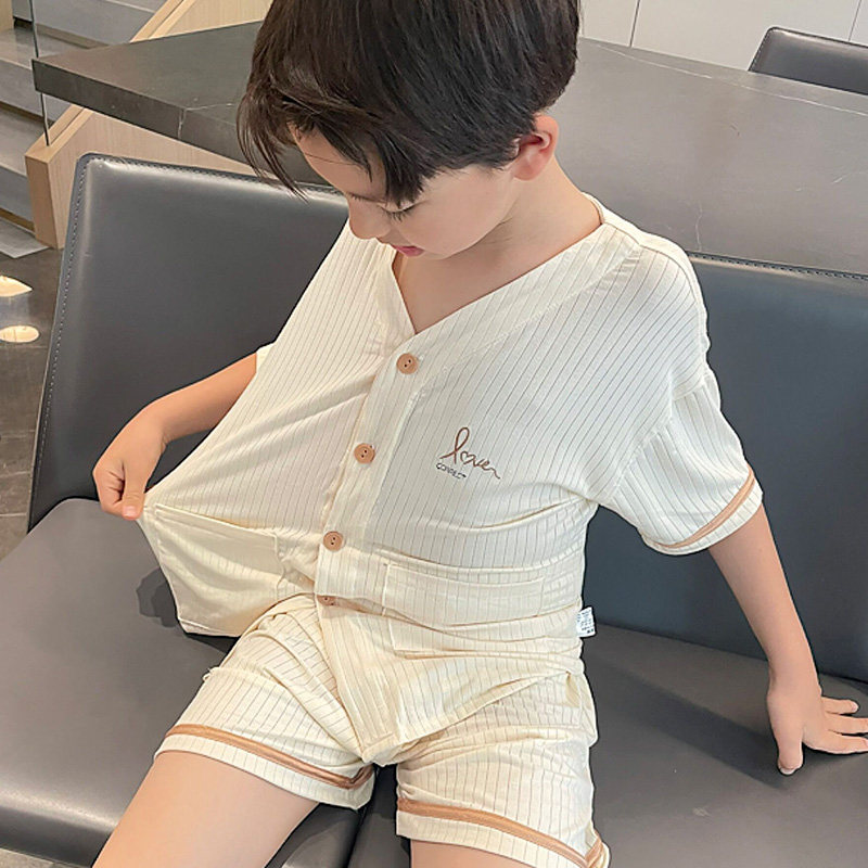 Детская летняя пижама, тонкий кардиган для мальчиков, детский шелковый комплект для отдыха