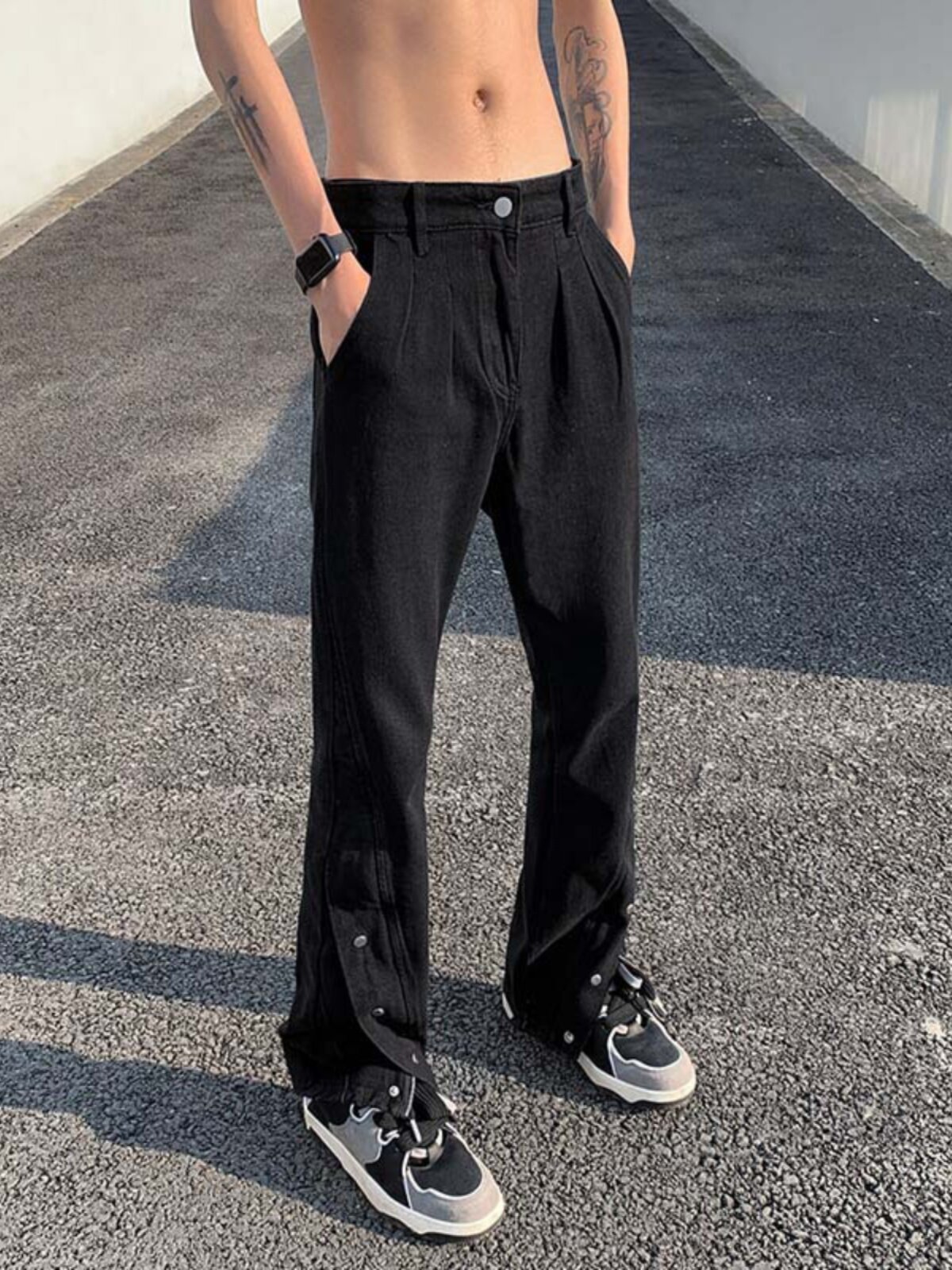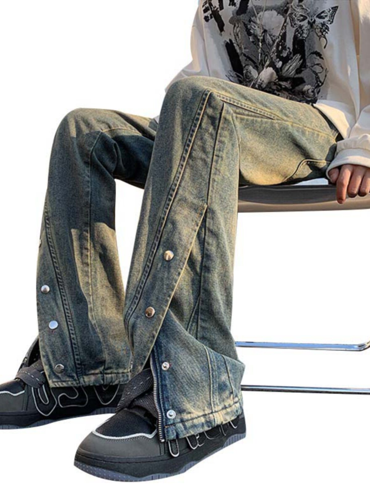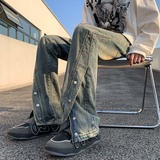 Небольшие дизайнерские джинсы, штаны, в американском стиле, тренд сезона, по фигуре, облегающий крой, свободный крой