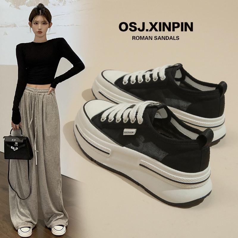 Тканевая обувь на платформе, летние сетчатые высокие дышащие кроссовки