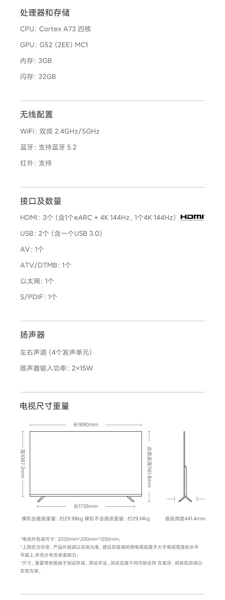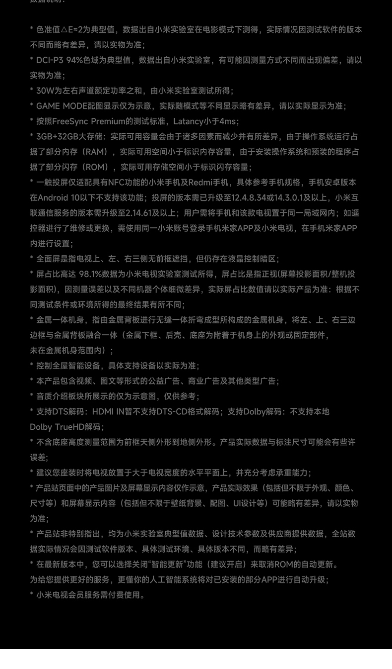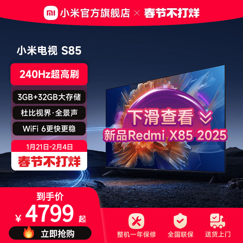 Xiaomi TV S85 -дюйм 4K 144 Гц Ultra -High Brush Fullcry Sound Control Ультра -высокий планшет