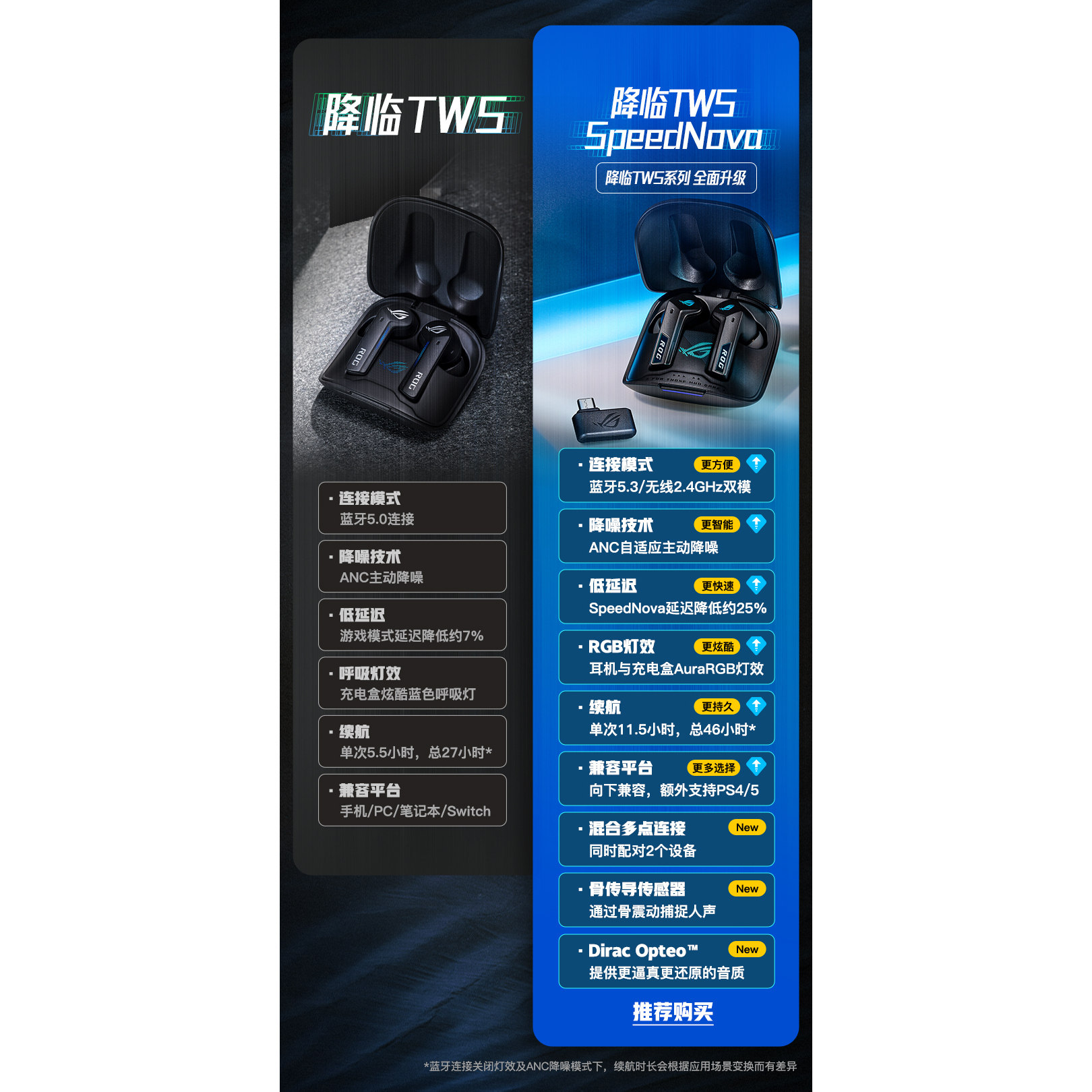 Asus Rog приходит в Tws Player Country Country Wireless Game Наушники ANC Active Active Noise, удаляя бассейн 5.0