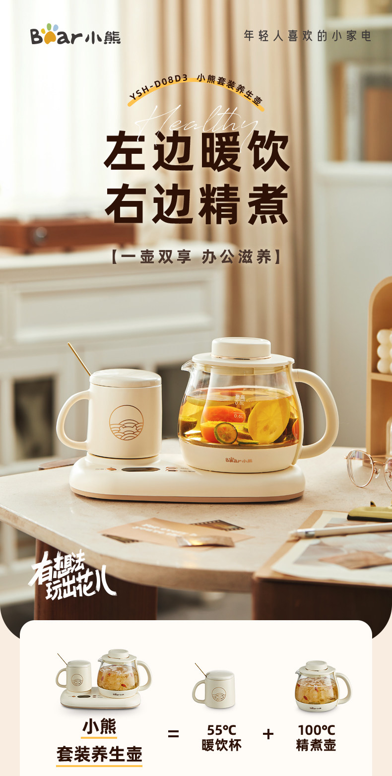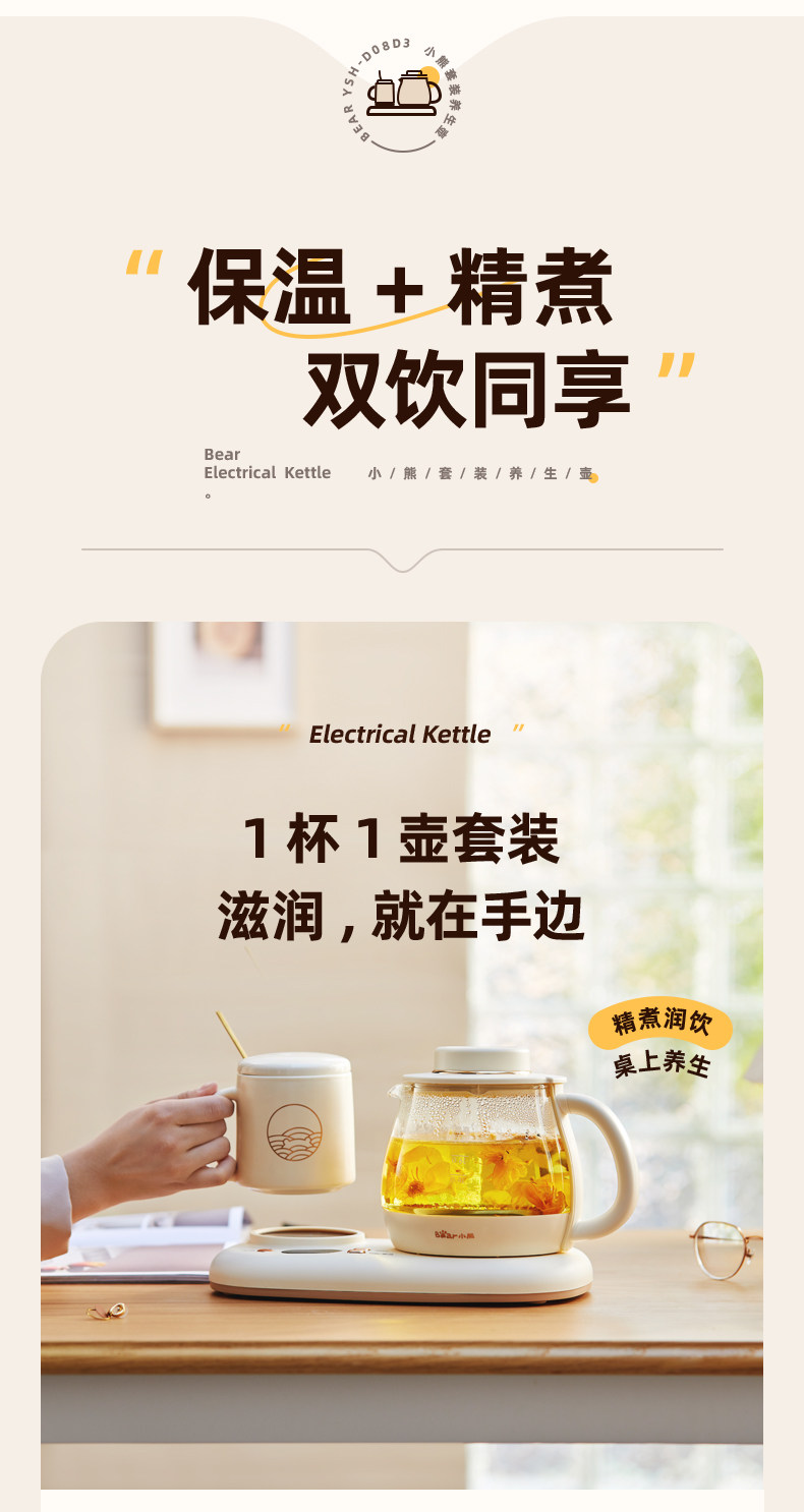 Универсальный комплект для домашнего использования для офиса, стеклянный ароматизированный чай, заварочный чайник, с медвежатами, поддерживает постоянную температуру