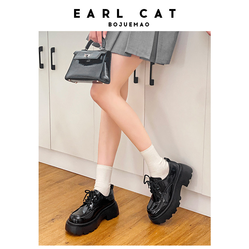 伯爵猫 Обувь для кожаной обуви, весенние высокие черные лоферы на платформе, из натуральной кожи, тренд сезона